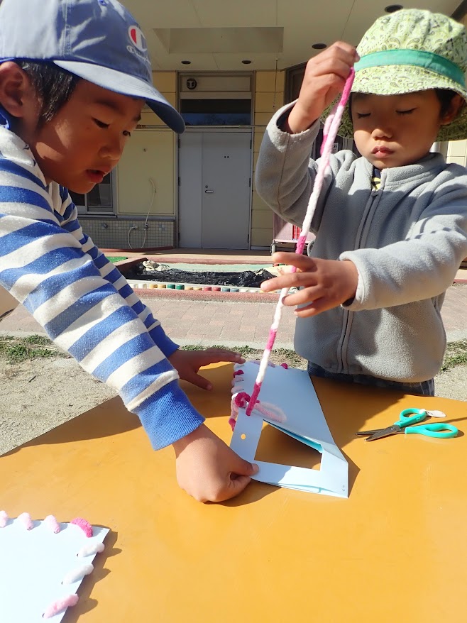 自分の分を作り終えた子は0,1歳児の袋作りを手伝ってくれました。