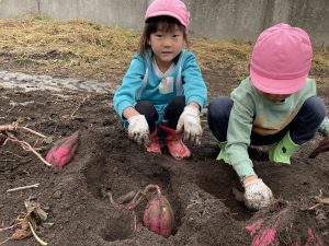 苗には何もついてなかったのに、お芋が出来るなんて、不思議だなぁ~と疑問に思いながらもお芋ほりを全力で楽しんでいました。