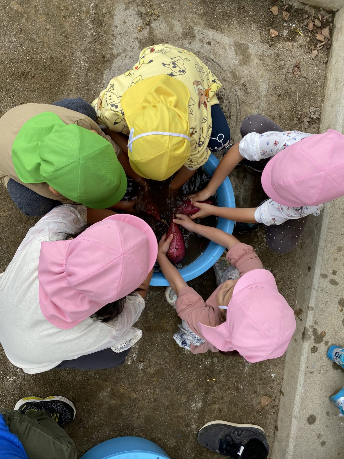 腕をまくって! 『お芋ゴシゴシ!お芋ゴシゴシ!』きれいに洗いました。