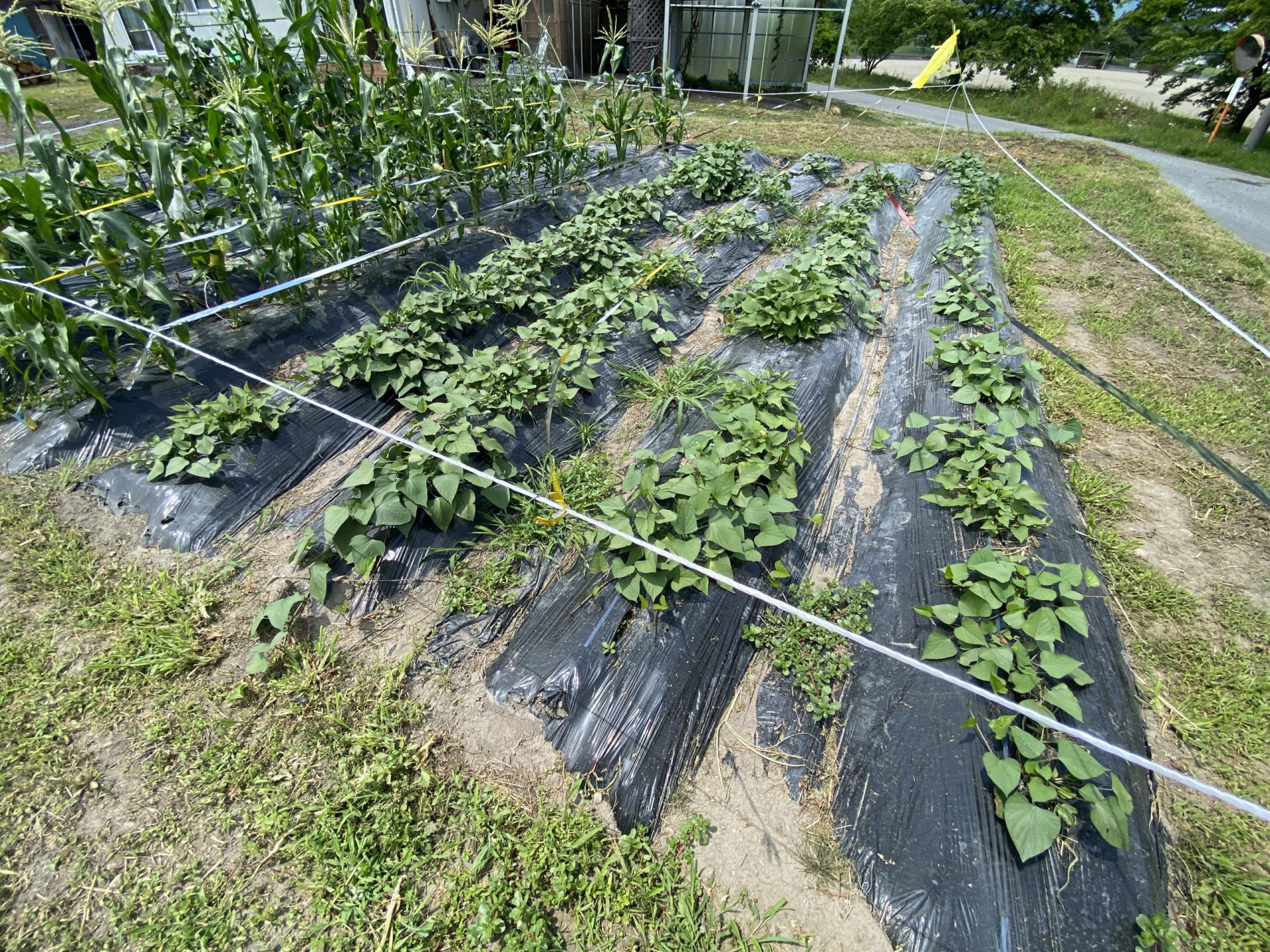 秋に行う焼き芋会に向けてさつまいもの苗を100本植えました。