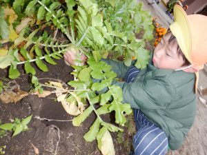 8月に収穫したじゃが芋が美味しかった子どもたちは、次に大根を育てようと決めました。