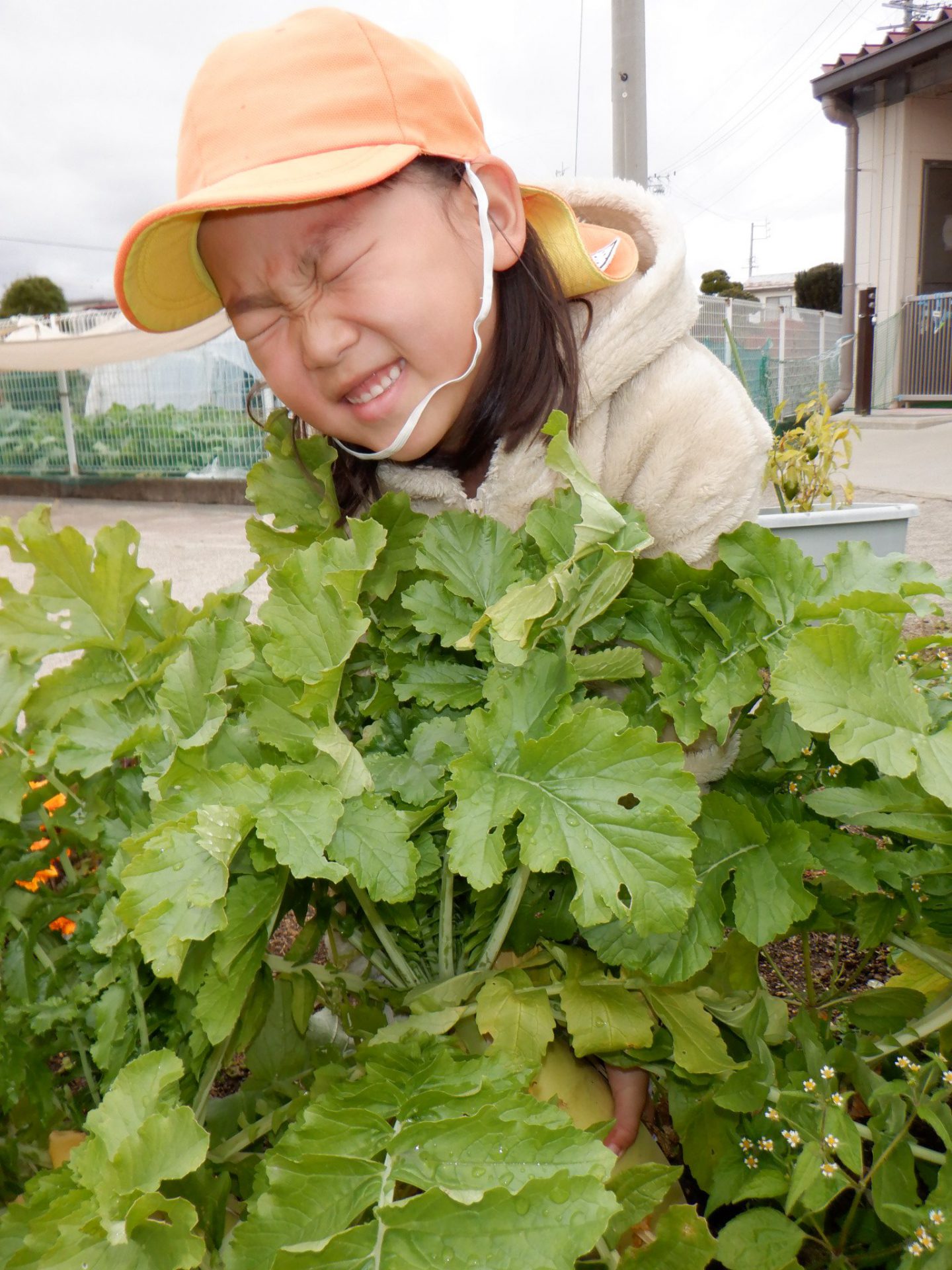 「虫に食べられてるー」「顔よりも大きいよ!」と驚いたり、喜んだりの子どもたちでした。