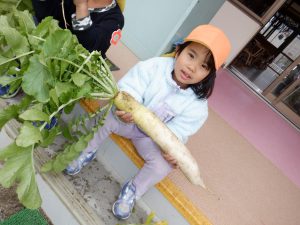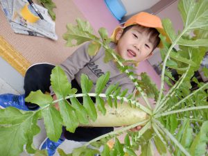 野菜が苦手な子も「自分たちで育てた大根」ということを喜び、家に帰って料理を手伝って食べた子も多かったようです。