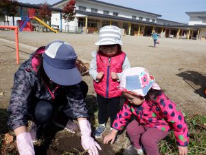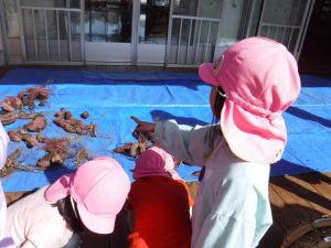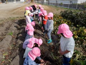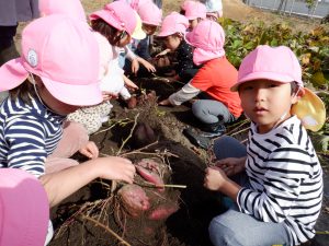 ・さつまいもの生長を通して、驚きや喜びを子どもたち自身が感じられ、また、遊びにも繋がったことを嬉しく思います。今後も身近な自然や植物に興味を持ち、新たな発見や楽しみにつなげていってほしいと思います。