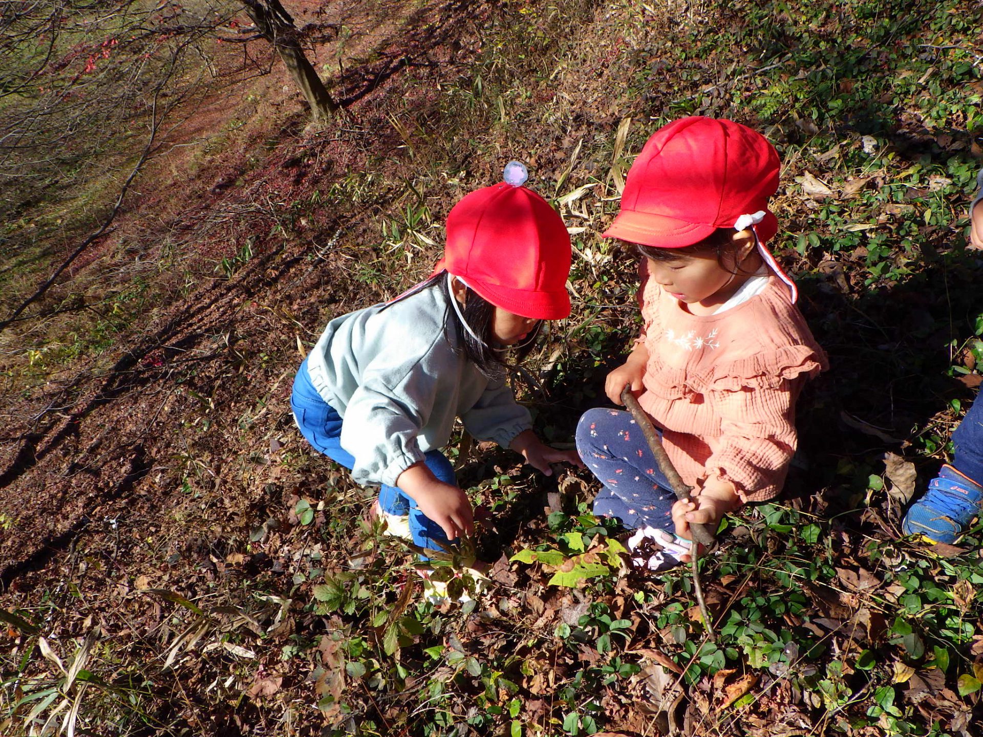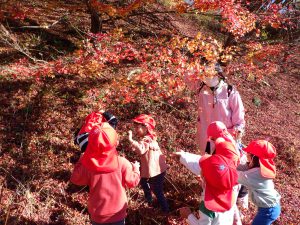 ・秋になり真っ赤な秋の歌を歌ってきた。もみじの赤や葉っぱの形、はらはらと舞い散る様子を実体験できたと思う。