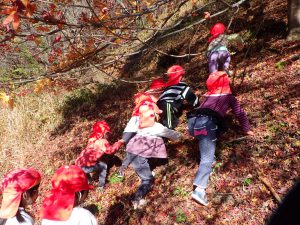 ・急な斜面だったが、ずり落ちても自分で登りたいという姿から、ただ登ったということでない、自分で登れたということが満足感、次に向かう気持ちに繋がっていると思った。