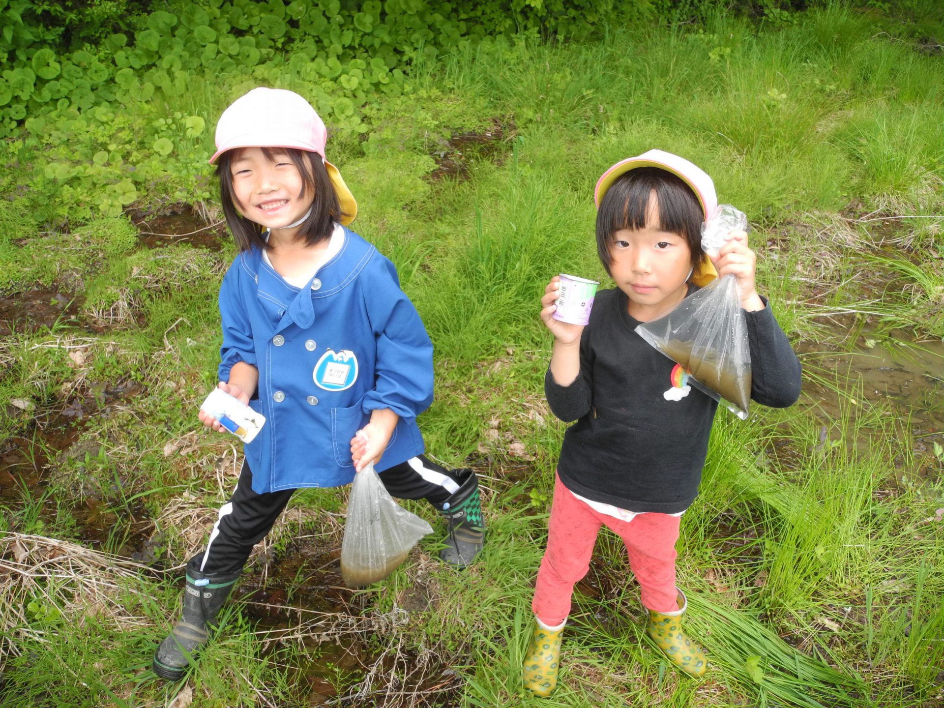 自分の虫取り網を持って 袋いっぱいにおたまじゃくしが