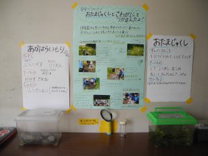 生き物を捕まえた時にはクラスで飼い様子を観察したり図鑑で調べたり、お世話をする姿も出てきました。