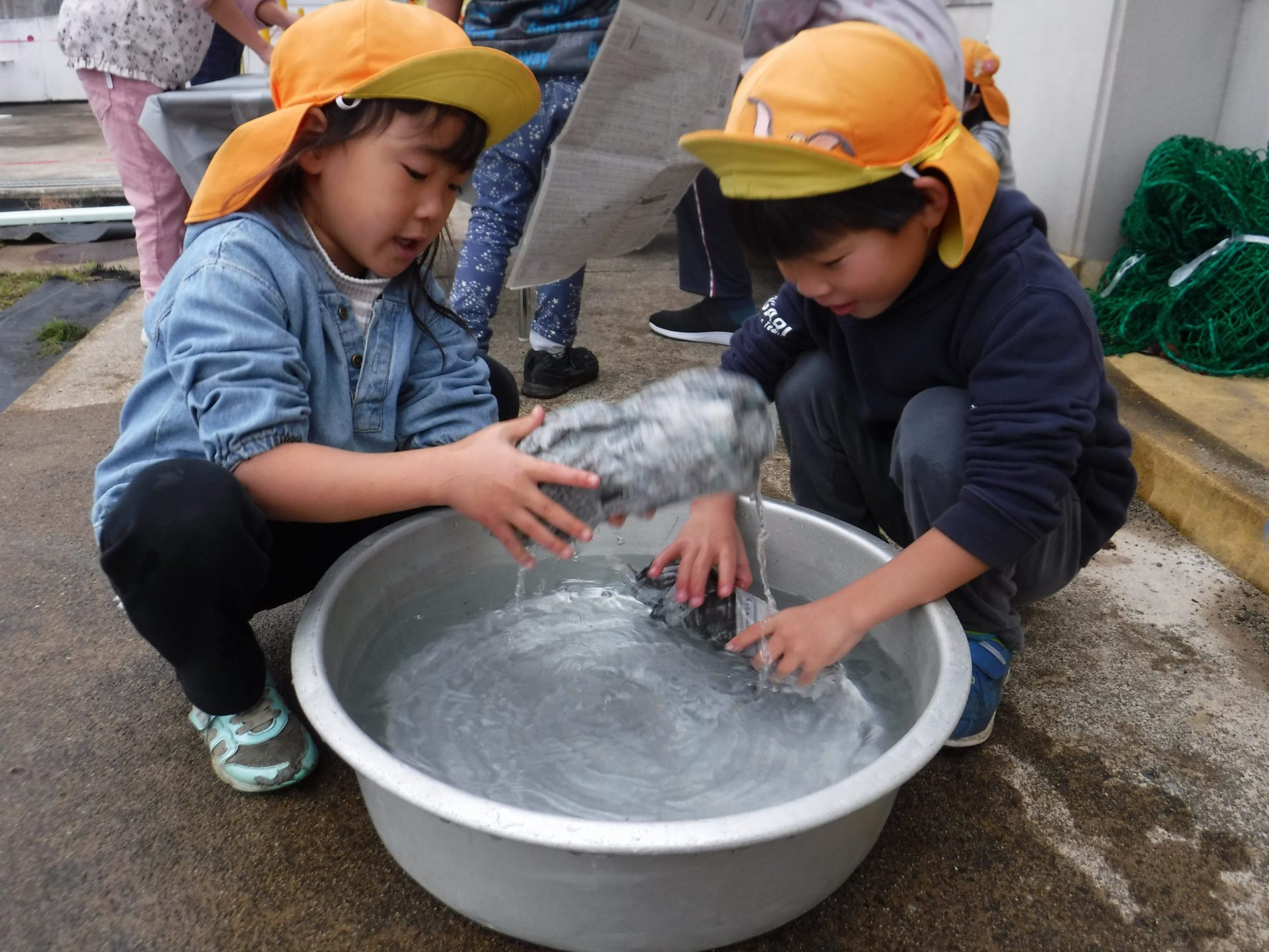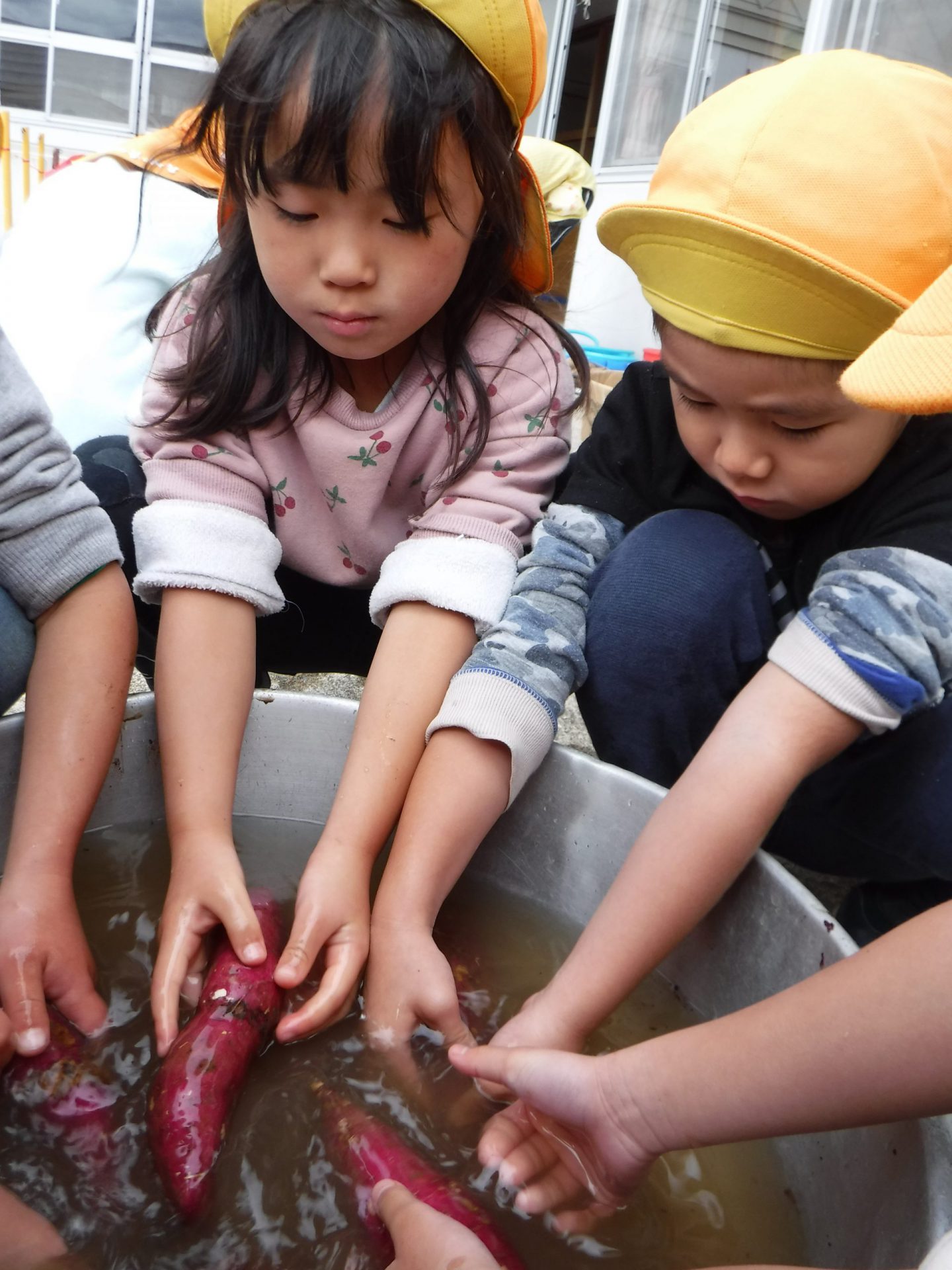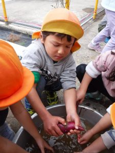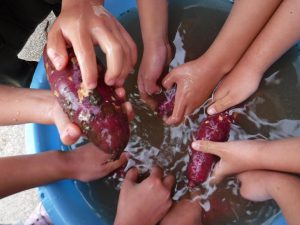 焼き芋大会の前日、頑張ってさつまいもを洗います。