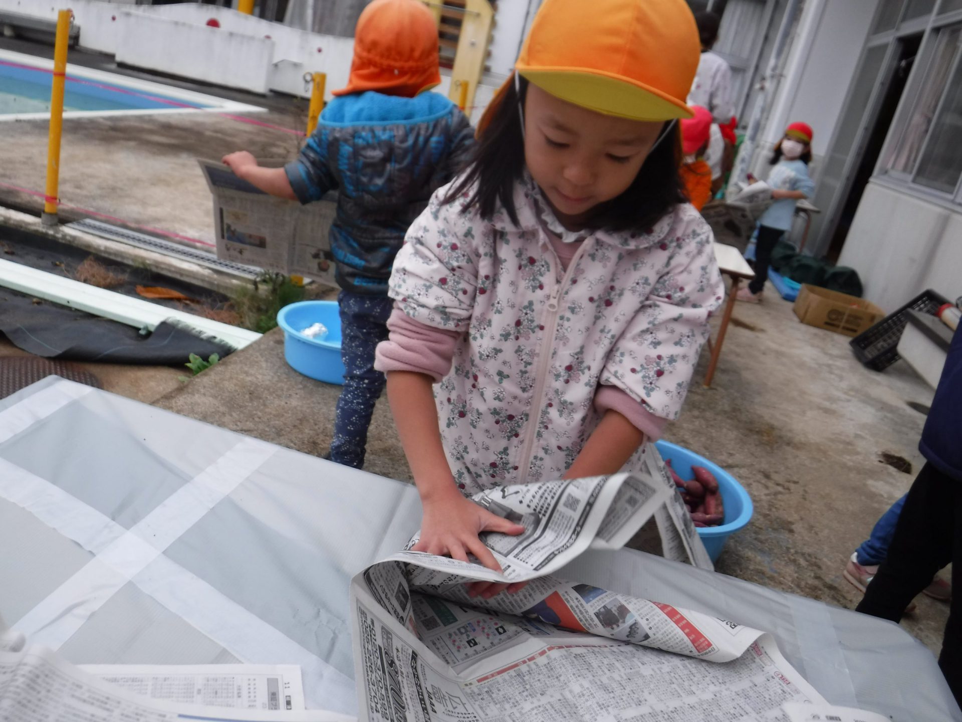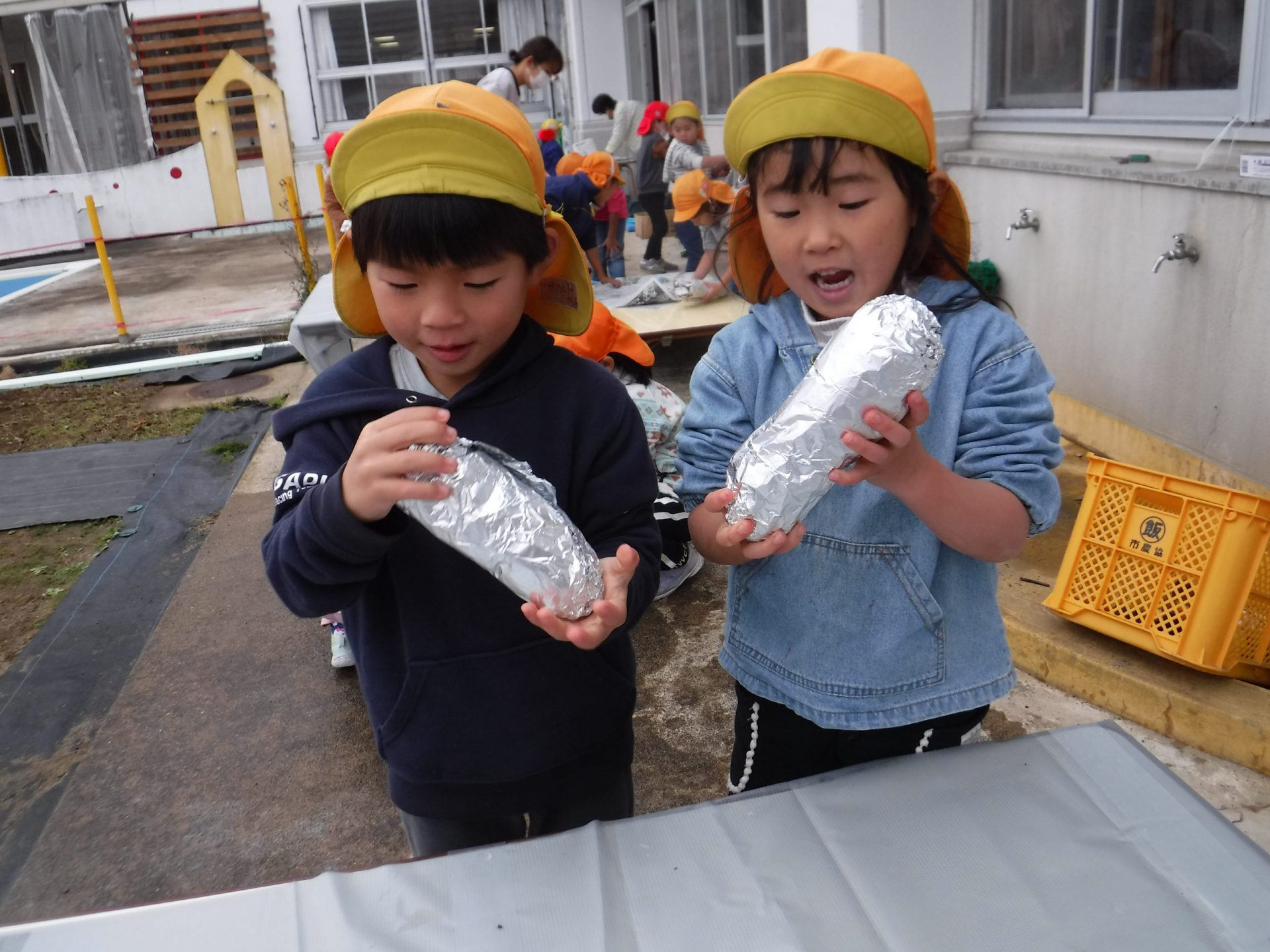 「上手に包めた!!」 「おいしい焼き芋になるかな〜楽しみ♪」