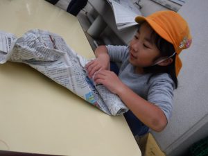 まずは新聞紙で丁寧に包んで
