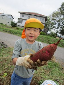 春に植えたさつまいもがどんどん大きくなり、みんなで収穫をしました。
