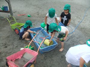 ・暑い日が続き、外に出ることが出来ない日や外に出ることを悩む日が続きました。ただ、どの活動も夏にしかできない経験なのでできるだけやらせてあげようと時間や場所を選んで行いました。例年に比べ外に出ることができませんでしたが、その中でも子どもたちの成長を感じることができました。ぜひお家でも外に出られるときには外に出て色々な活動をしてみてください。
