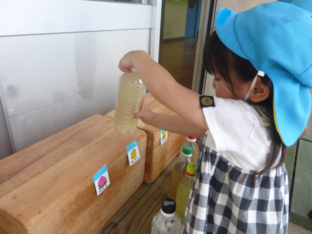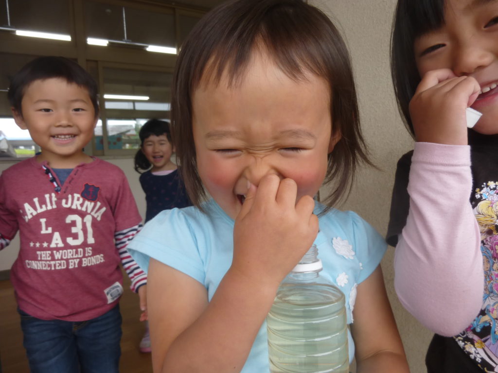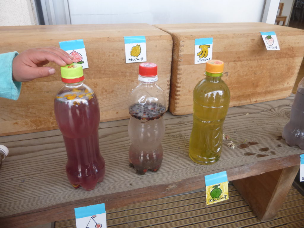 ということで、興味津々の子ども達は一斉に作り貯めていたジュースの匂いを嗅いでみることにしました。