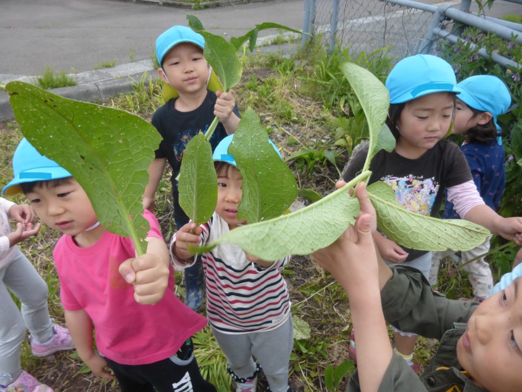 子ども達の生き物に対する興味と「はっぱのおうち」の絵本の内容がぴったり合い、今回の活動につながっていきました。