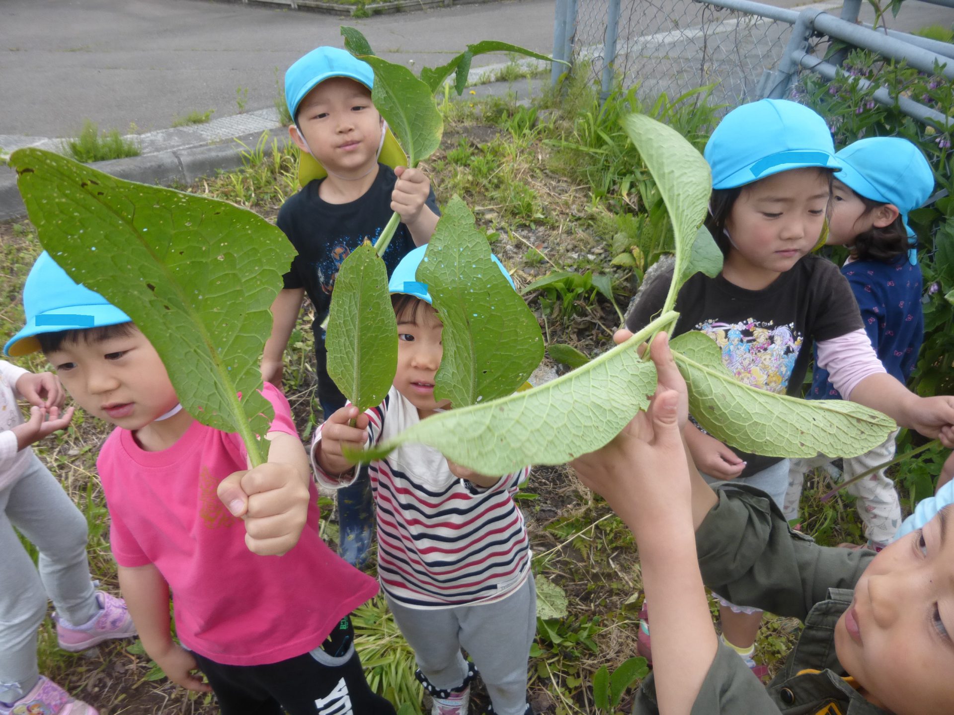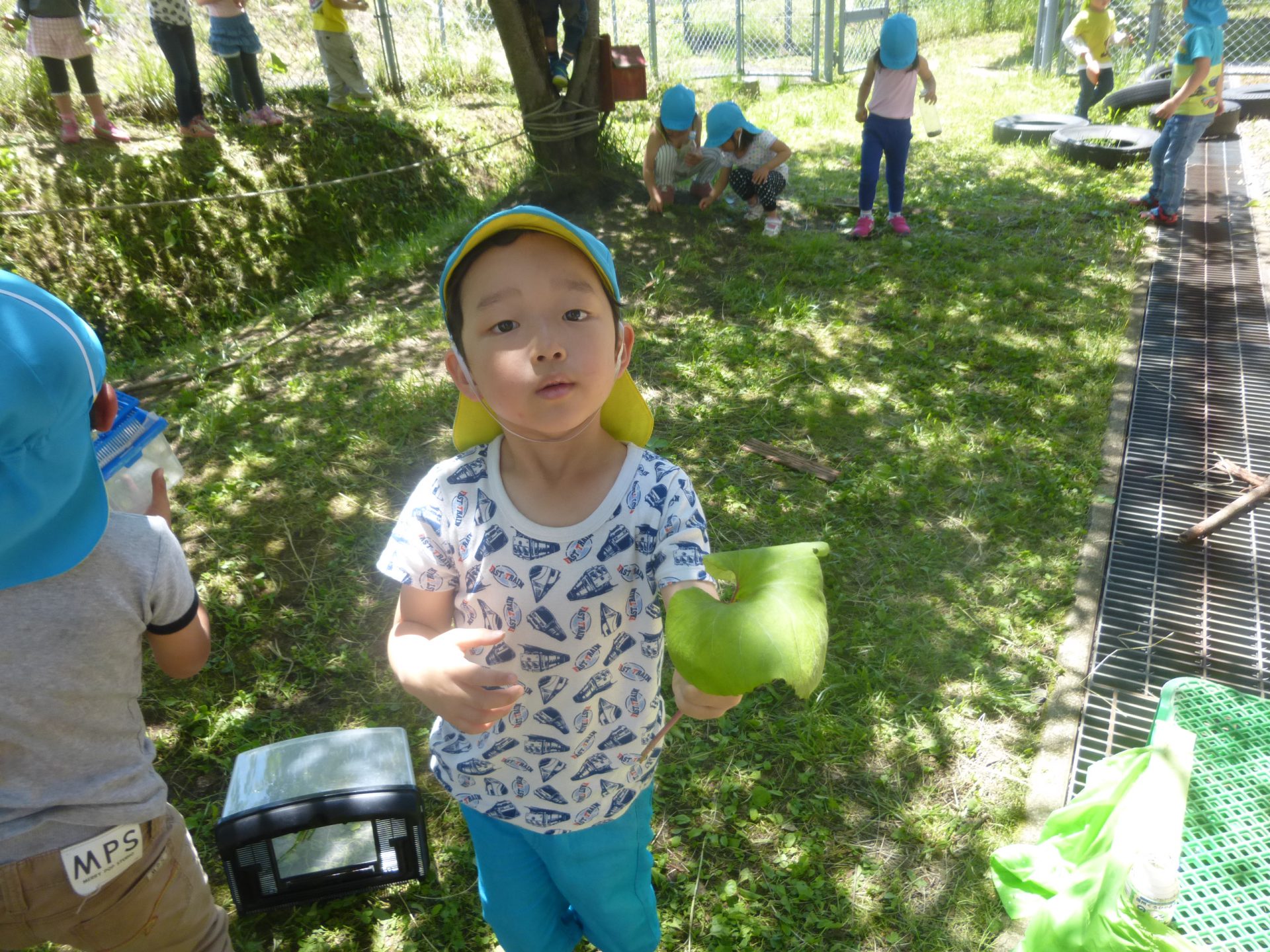 それでも家から大きいはっぱを持ってきて乗せる子もいました。