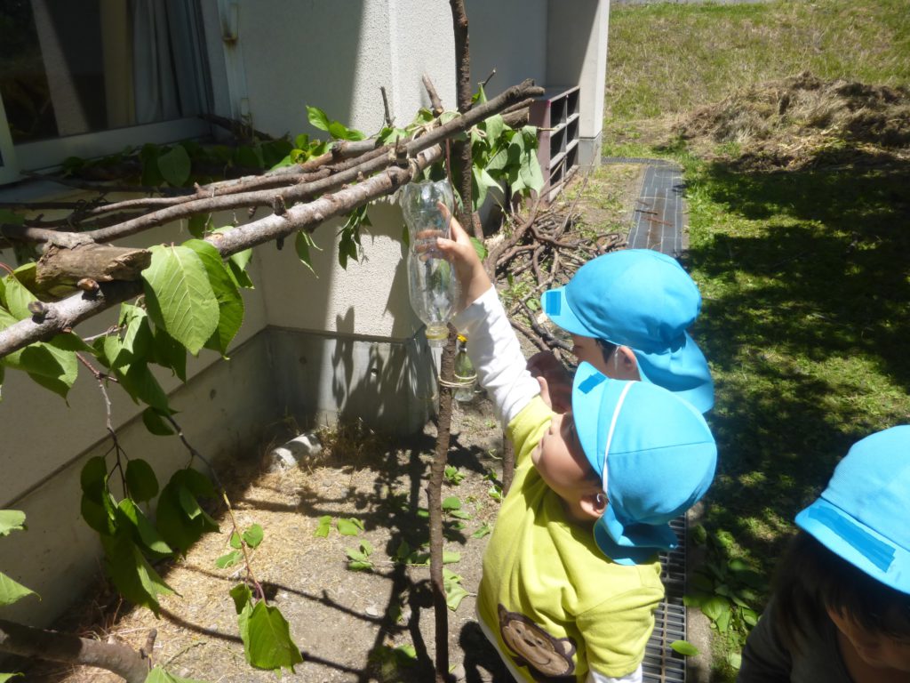 さて、はっぱのおうちに虫たちは遊びにきてくれるのでしょうか??