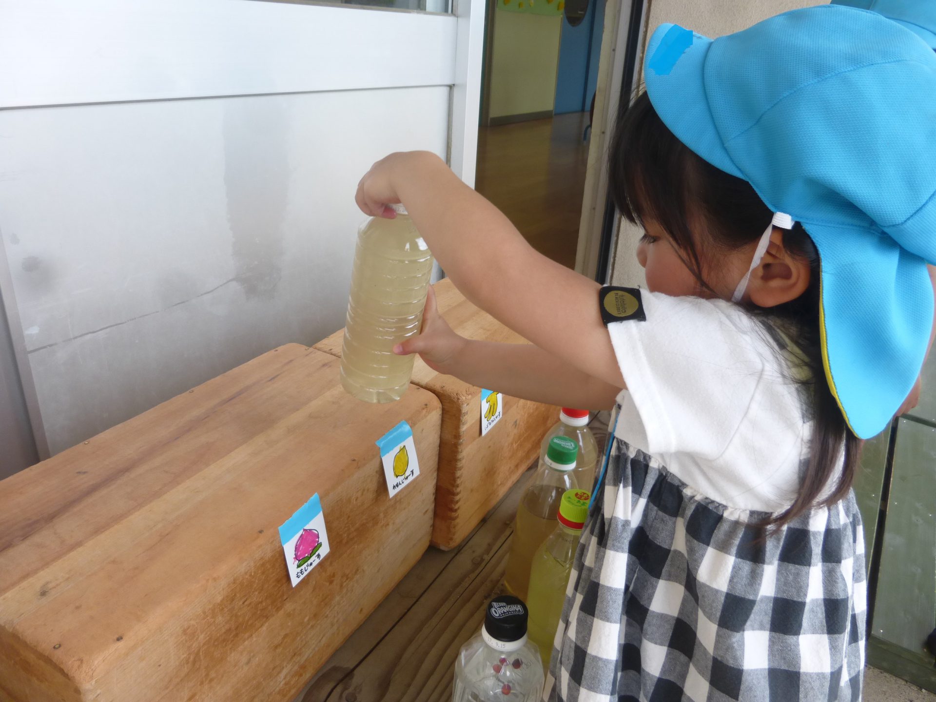 天気の良い日が続き、もも組の子ども達のジュース作りが盛り上がっています。