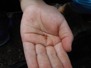 「ハツカダイコンと同じ色の種だよ」 「ふかふかの土のベッドに入れてあげよう」