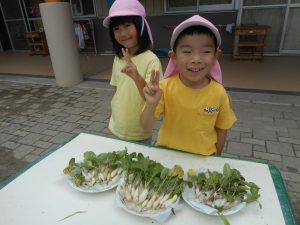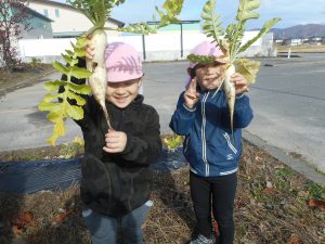 また、自分たちが育てた大根が他クラスのお友達に味わってもらえたことも嬉しい経験になったようです。