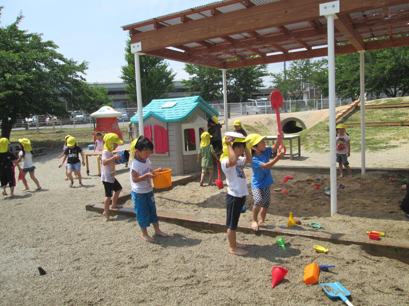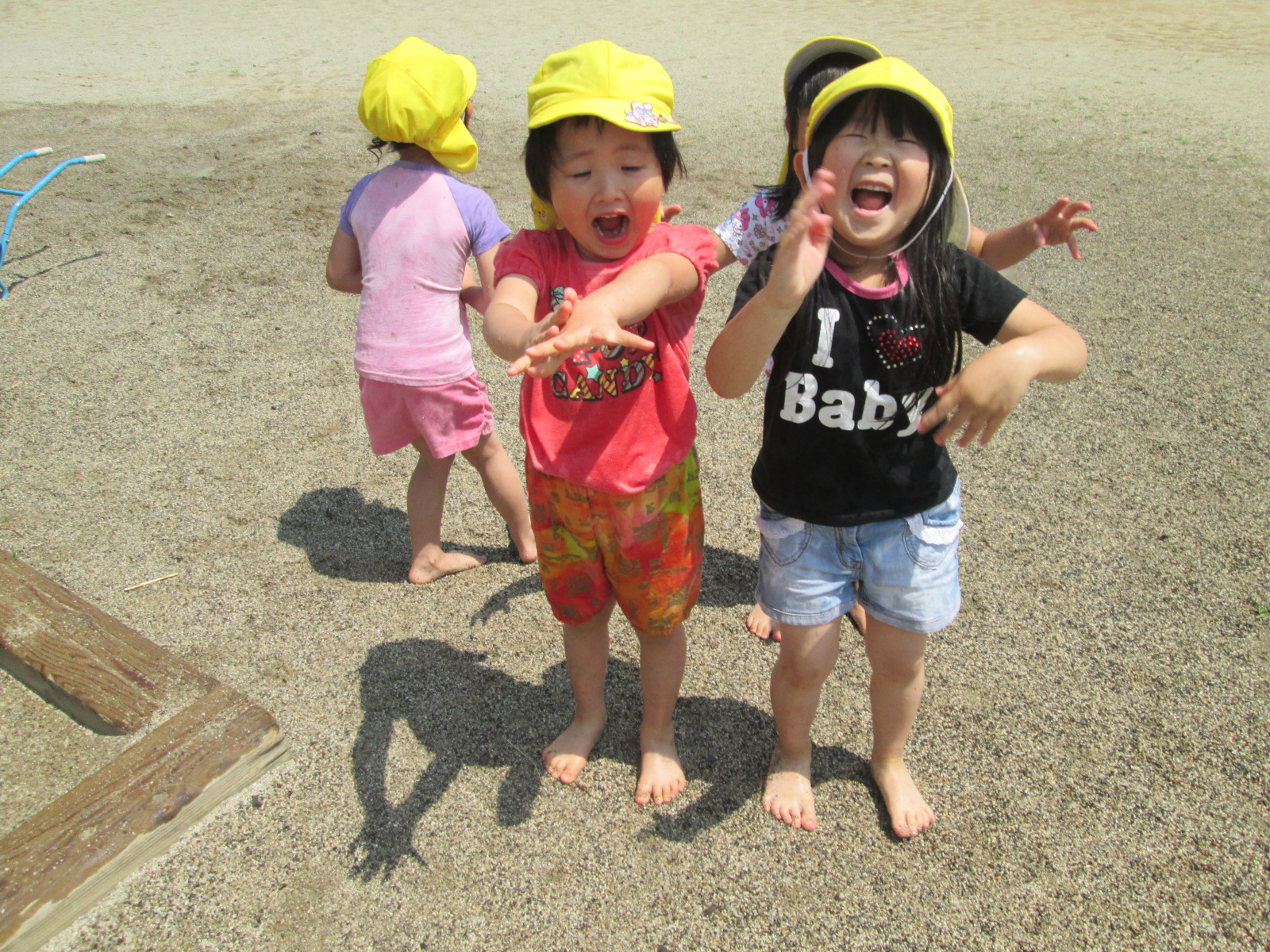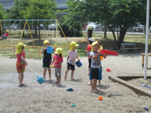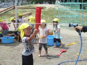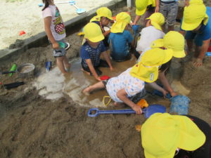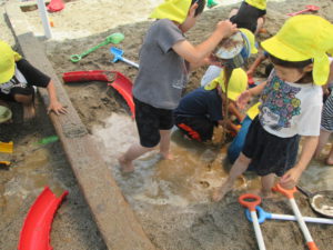 水や砂、泥で遊ぶ経験を大事にしていきたいと思います。解放的に、ダイナミックに遊べるように環境づくりをしていきたいと思います。