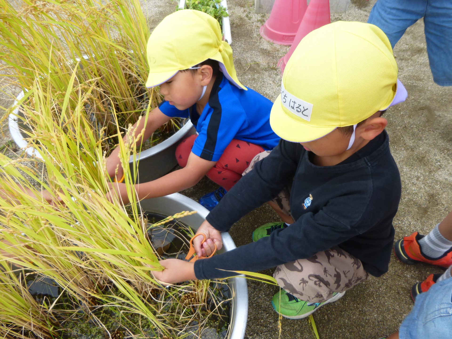 春から秋まで、様々な食材に関心を持って育ててきた子どもたち、年下の子たちが畑や田んぼを見に来ると