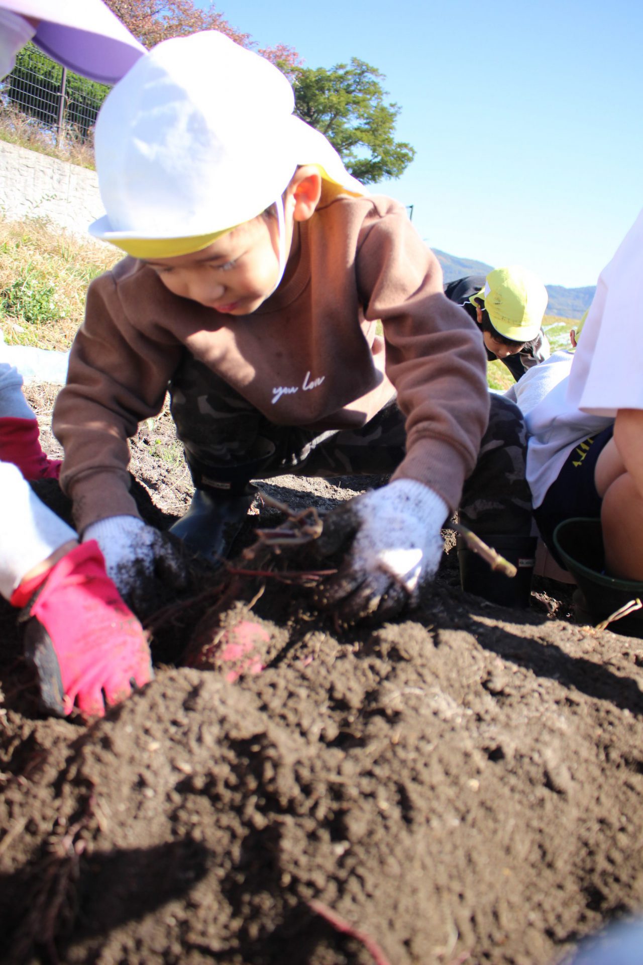 秋には、隣の中学校の生徒さんと夏に植えた、“サツマイモ”の収穫体験をさせていただきました。