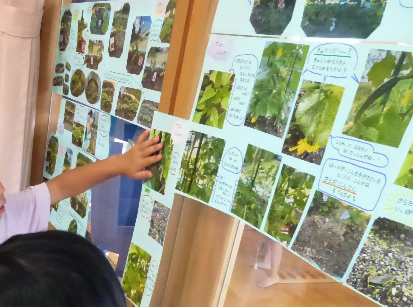担任が、今までの野菜づくりの様子を、写真付きでまとめたものを掲示すると、