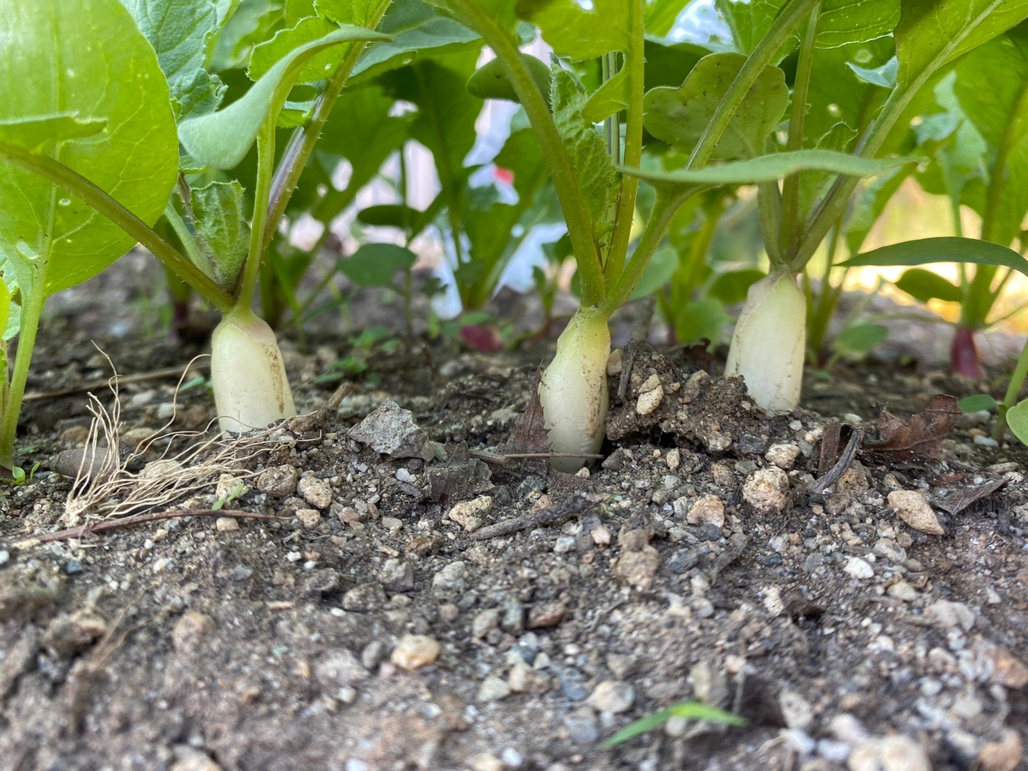 「前のひまわりさんが作ってた、赤い丸いのなんだっけ?」 「かぶ?」 「大根?」