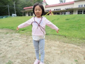 体にも巻いていました。子どもたちの発想は無限です。