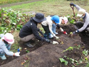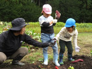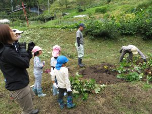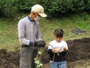 公民館の体験活動として、館長さんと主事さんが宮沢さんの畑まで連れてきてくれました。