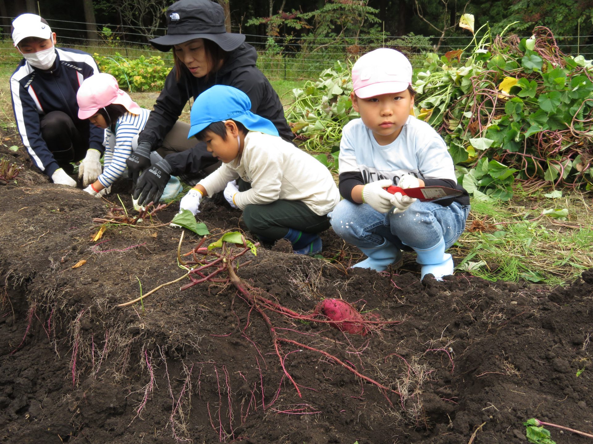 ・1本のつるから、たくさんおいもができてるね。