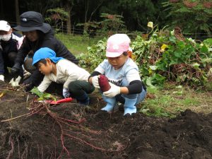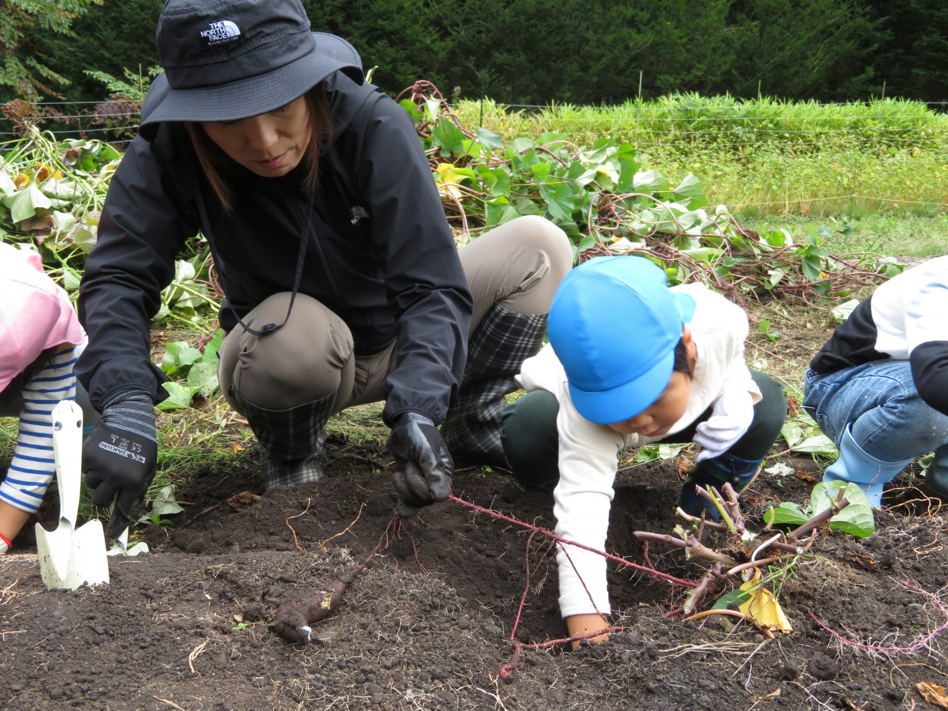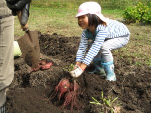 ・土が固くて、おいもはびくともしないね。