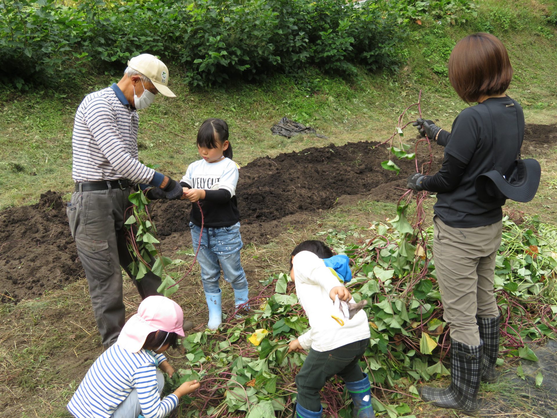 さつまいもをほりやすくするため、つるを取り除いてくれました。