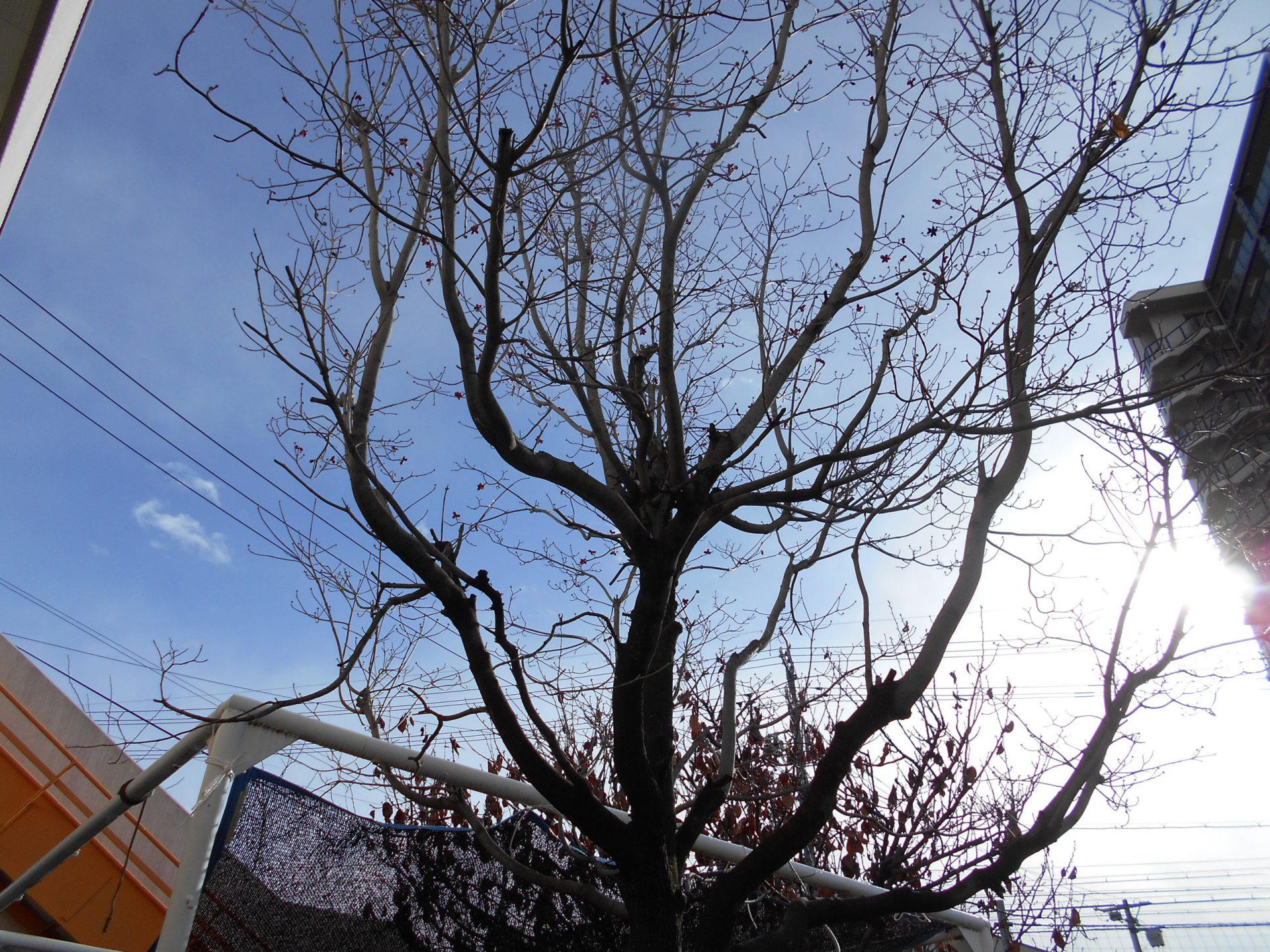冬になって枝だけの木になってしまいました。