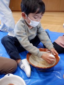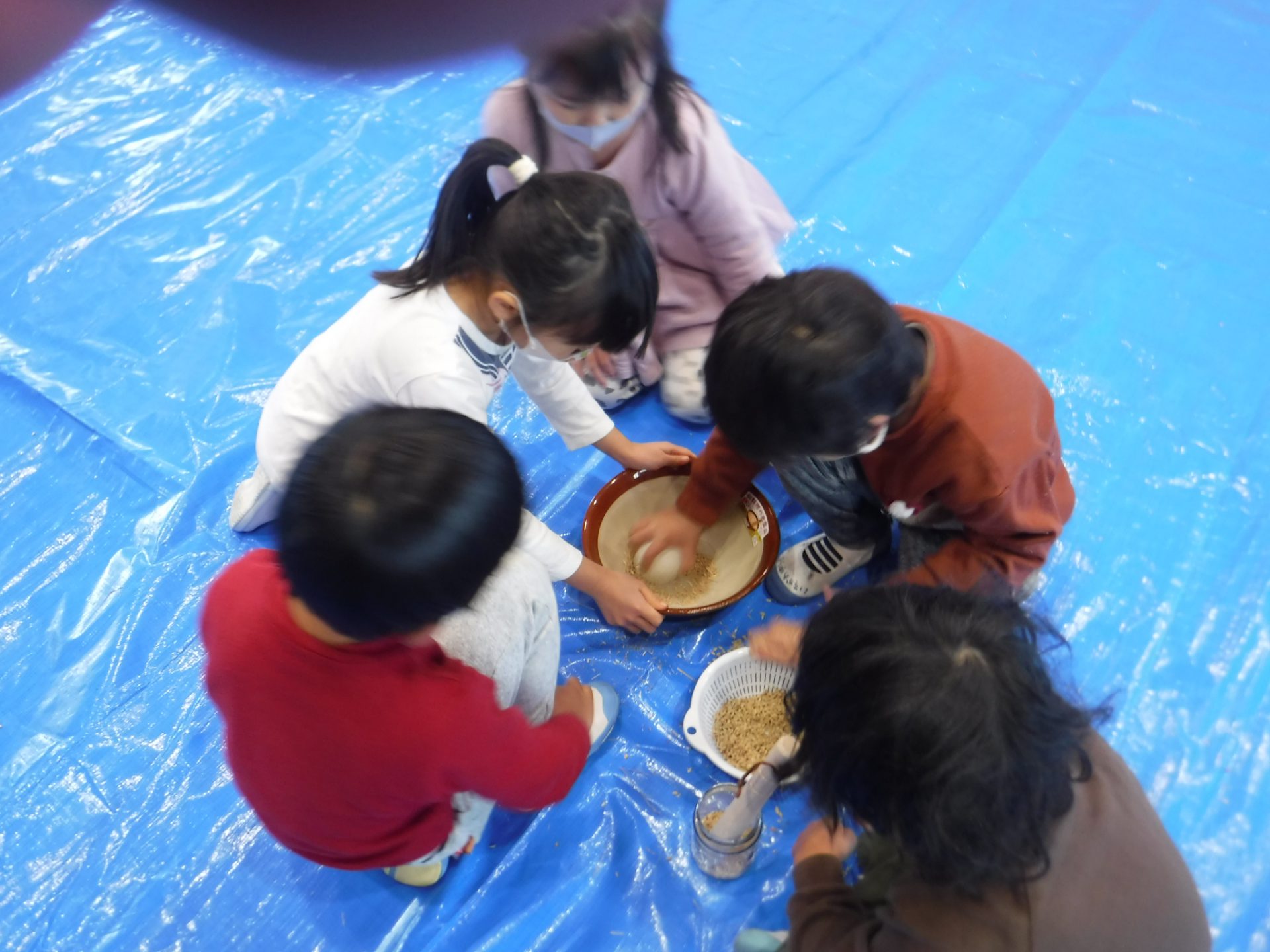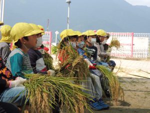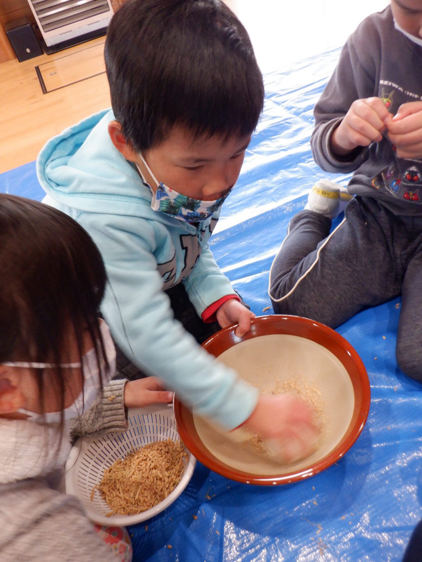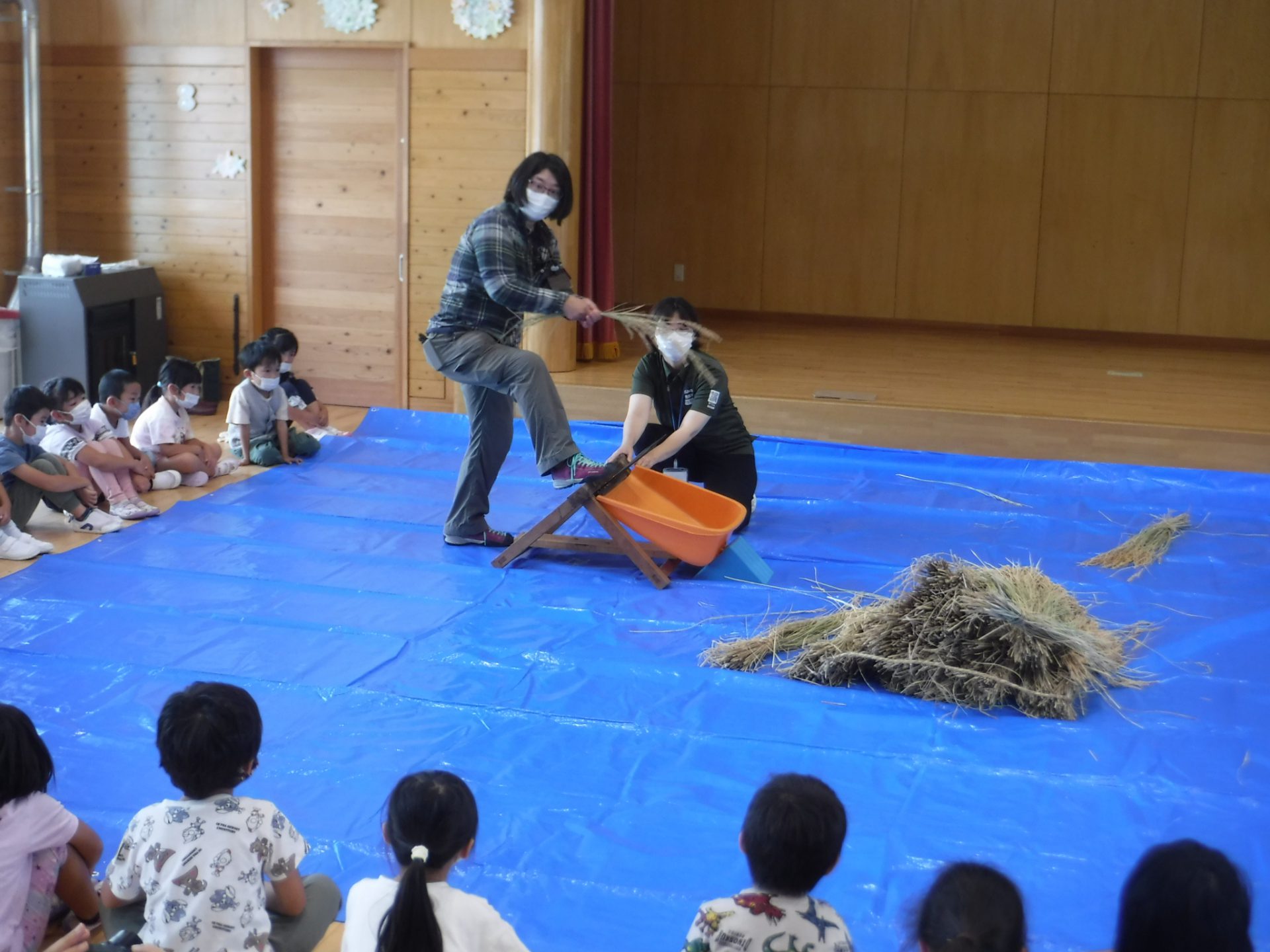 脱穀や籾摺りの経験を通し、自分達の作ったお米を食べられる喜びを感じ、農家の方の仕事を知って感謝の気持が育まれたら‥と、思います。