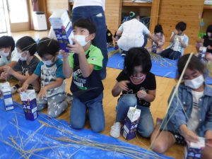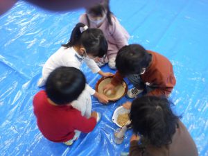 次第にコツを掴んできた子ども達!次々と脱穀していきます!