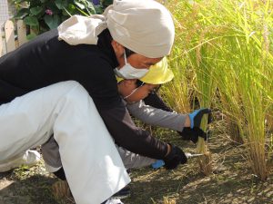 「鎌で刈るのは難しいけど、上手にできたよ!」