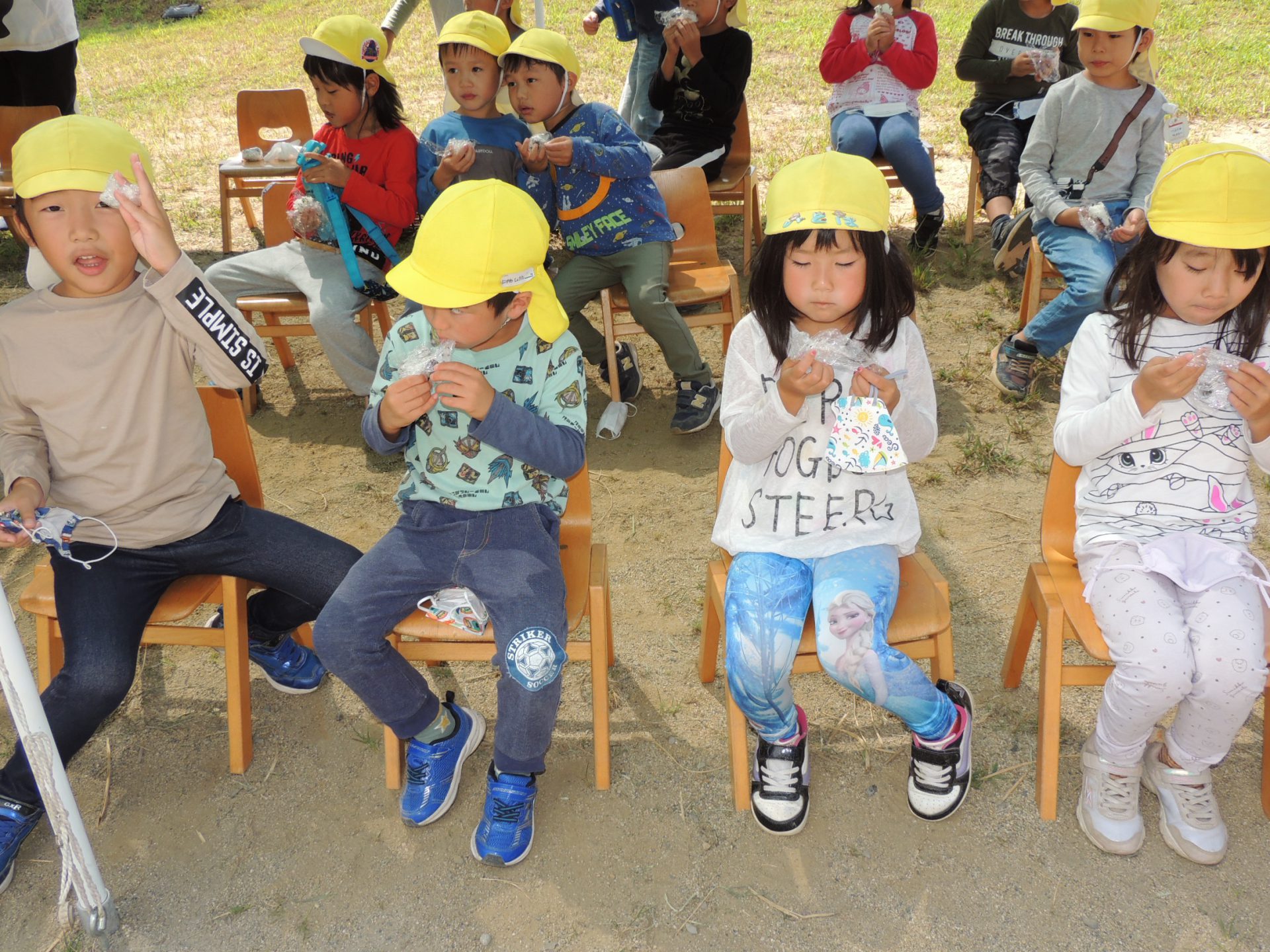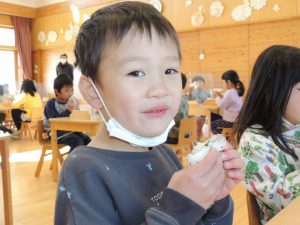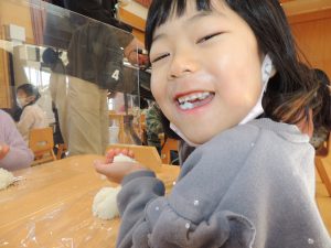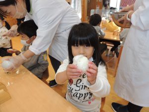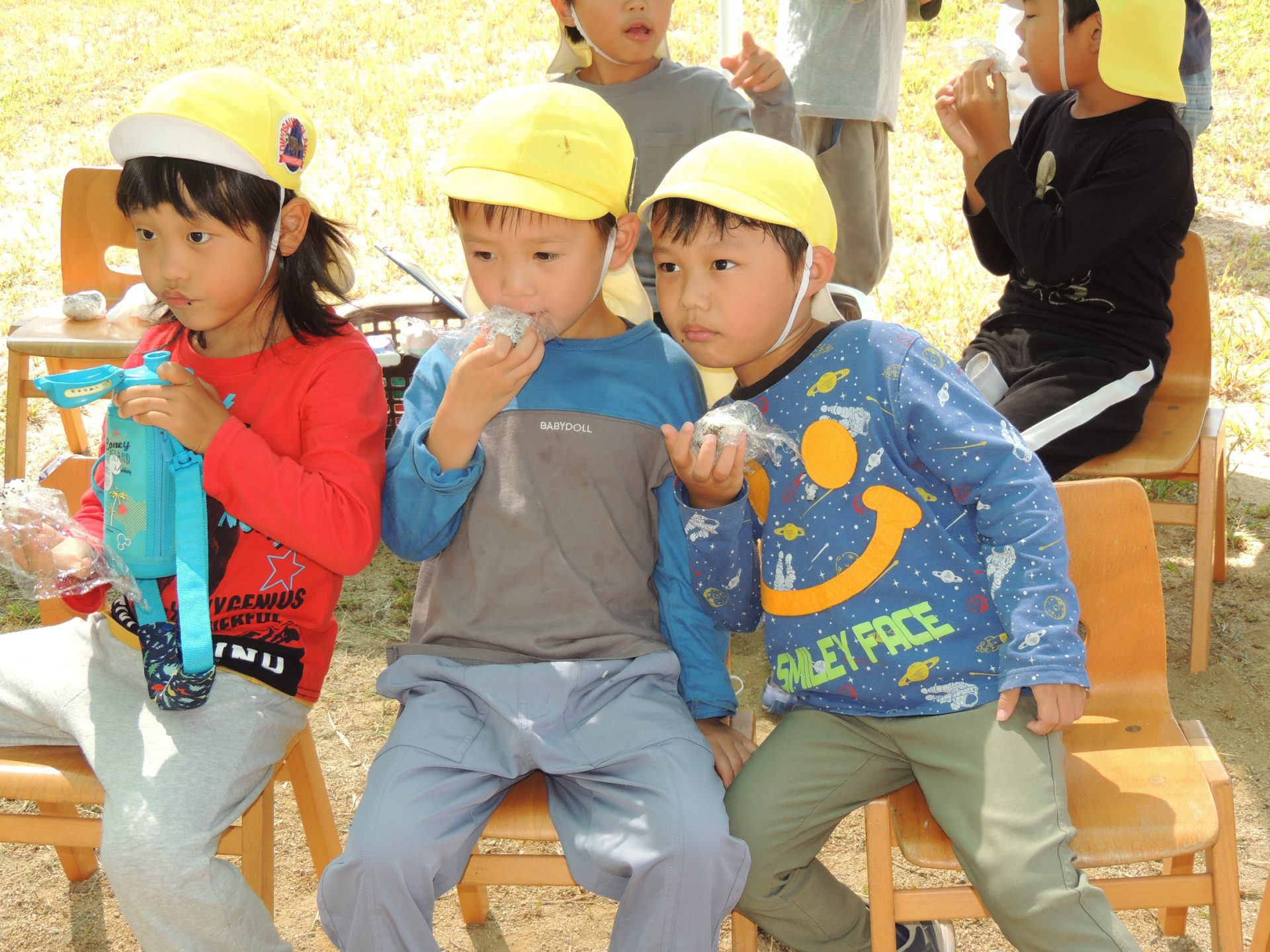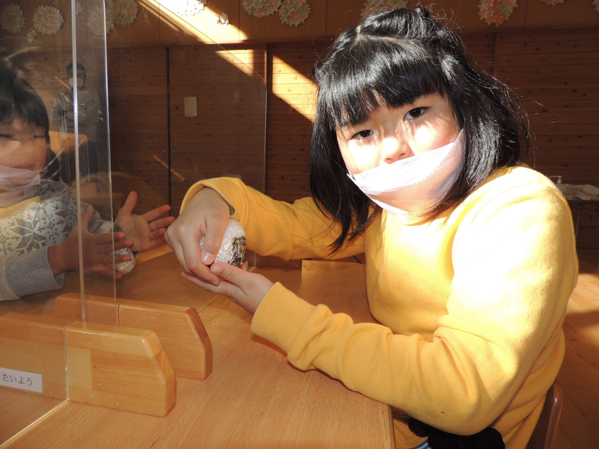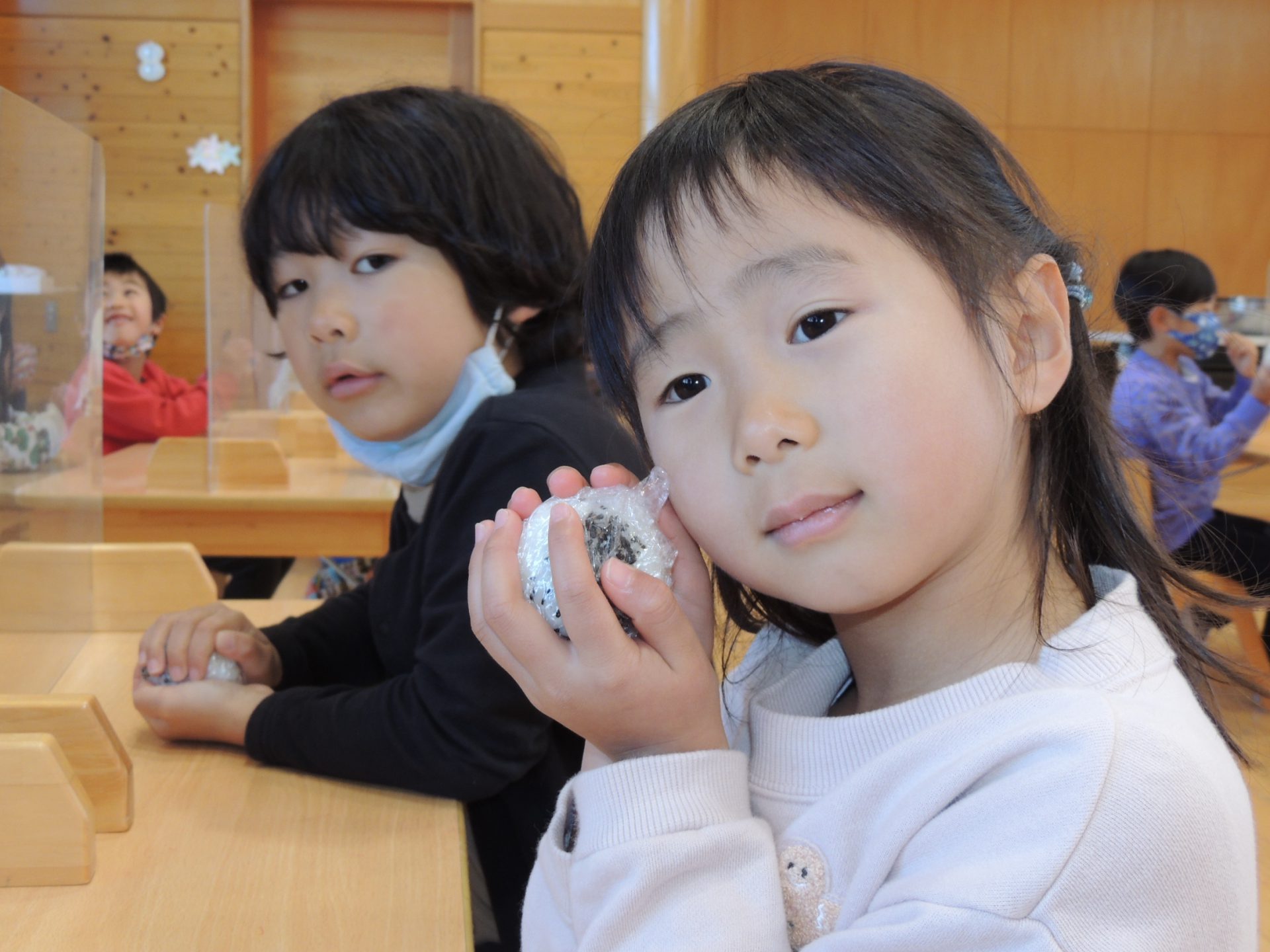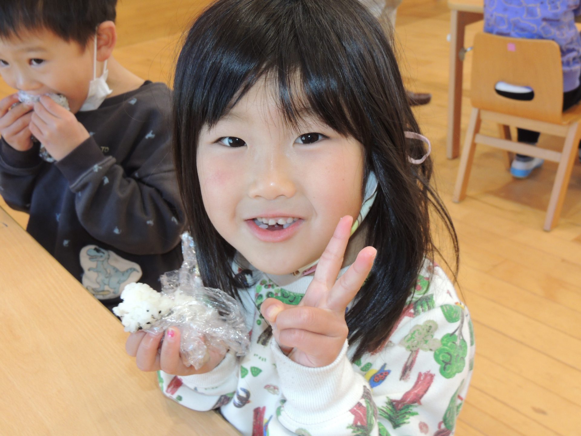 その後は、皆で、ごま塩おにぎりの「おこひる」をいただきました。