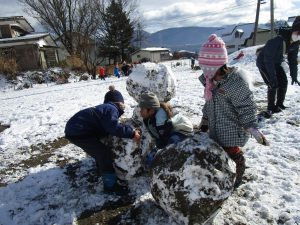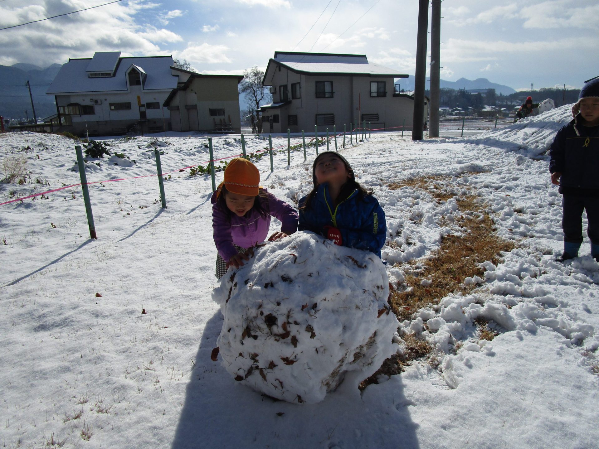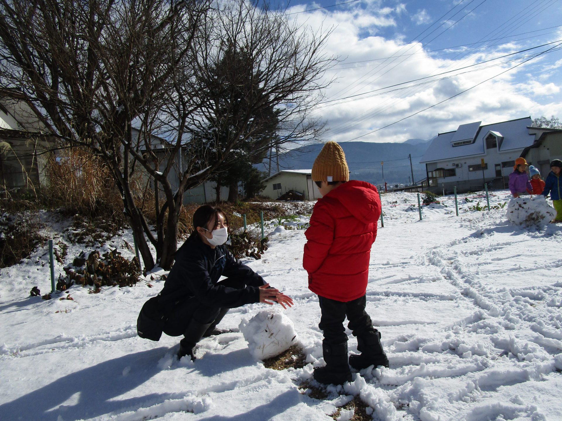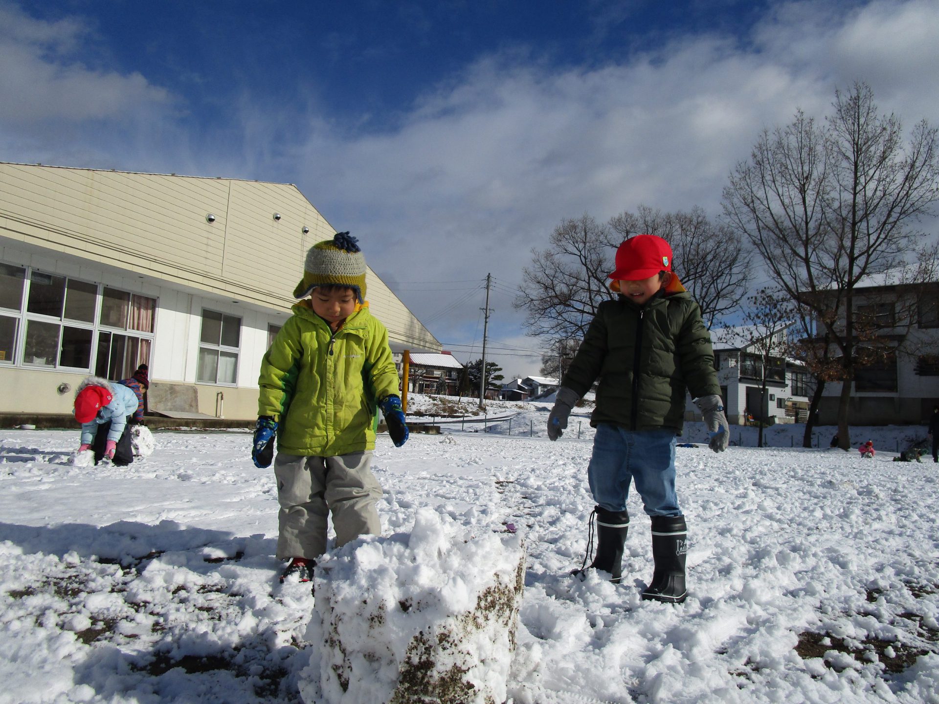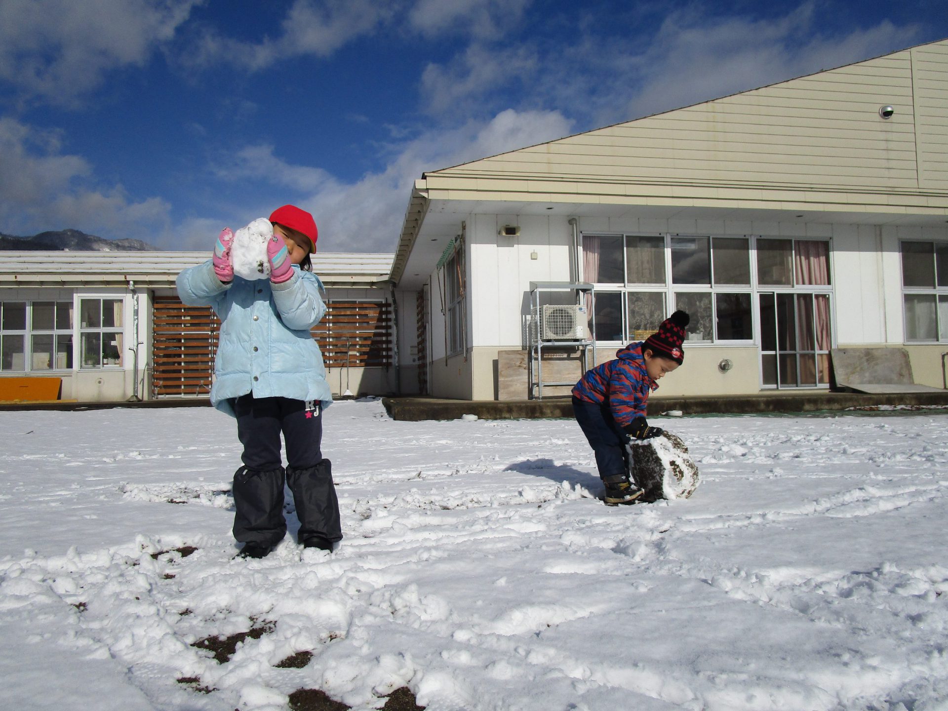 昨年の経験を活かして、すぐに友達と協力して雪だるま☃を作り始める5歳児