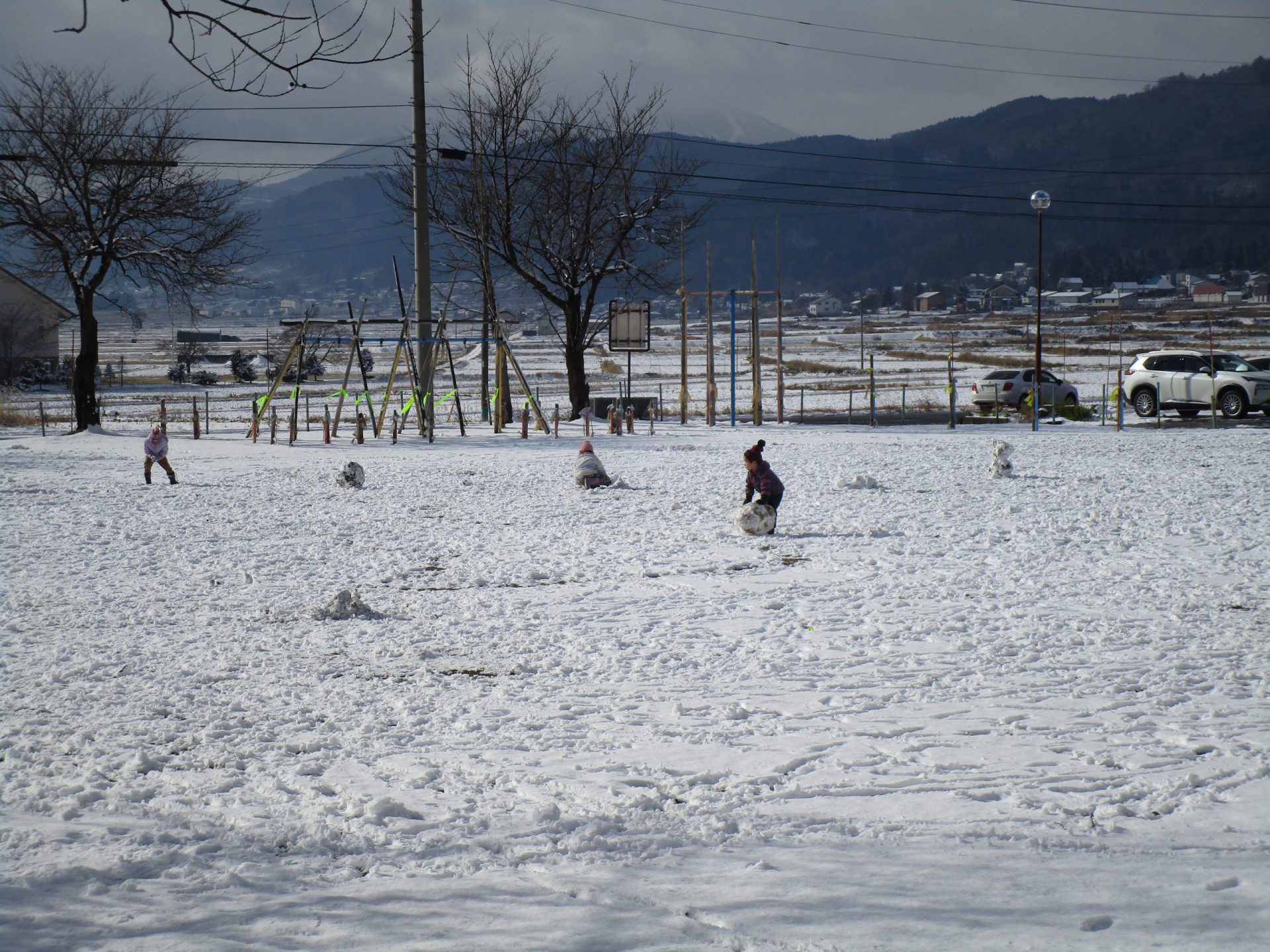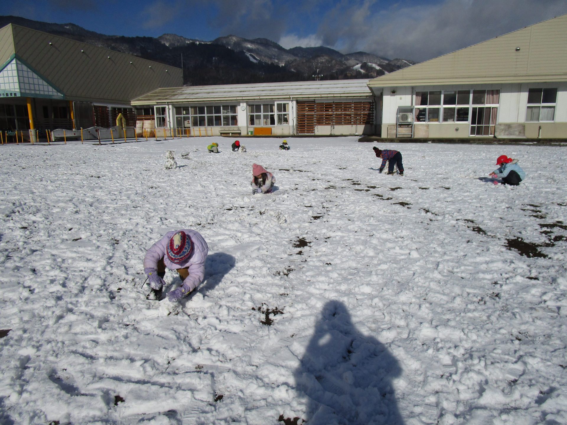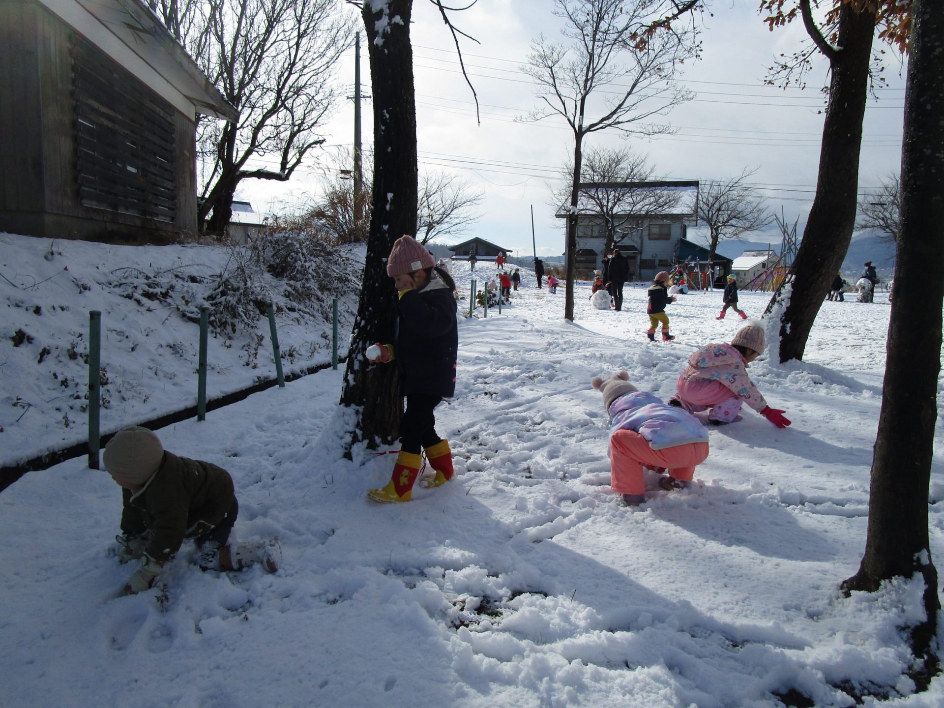 小さい玉から、転がして大きくすることを知った3,4歳の子どもたちは、踏み荒らされていない白い雪を求めあちらこちらに・・・・。