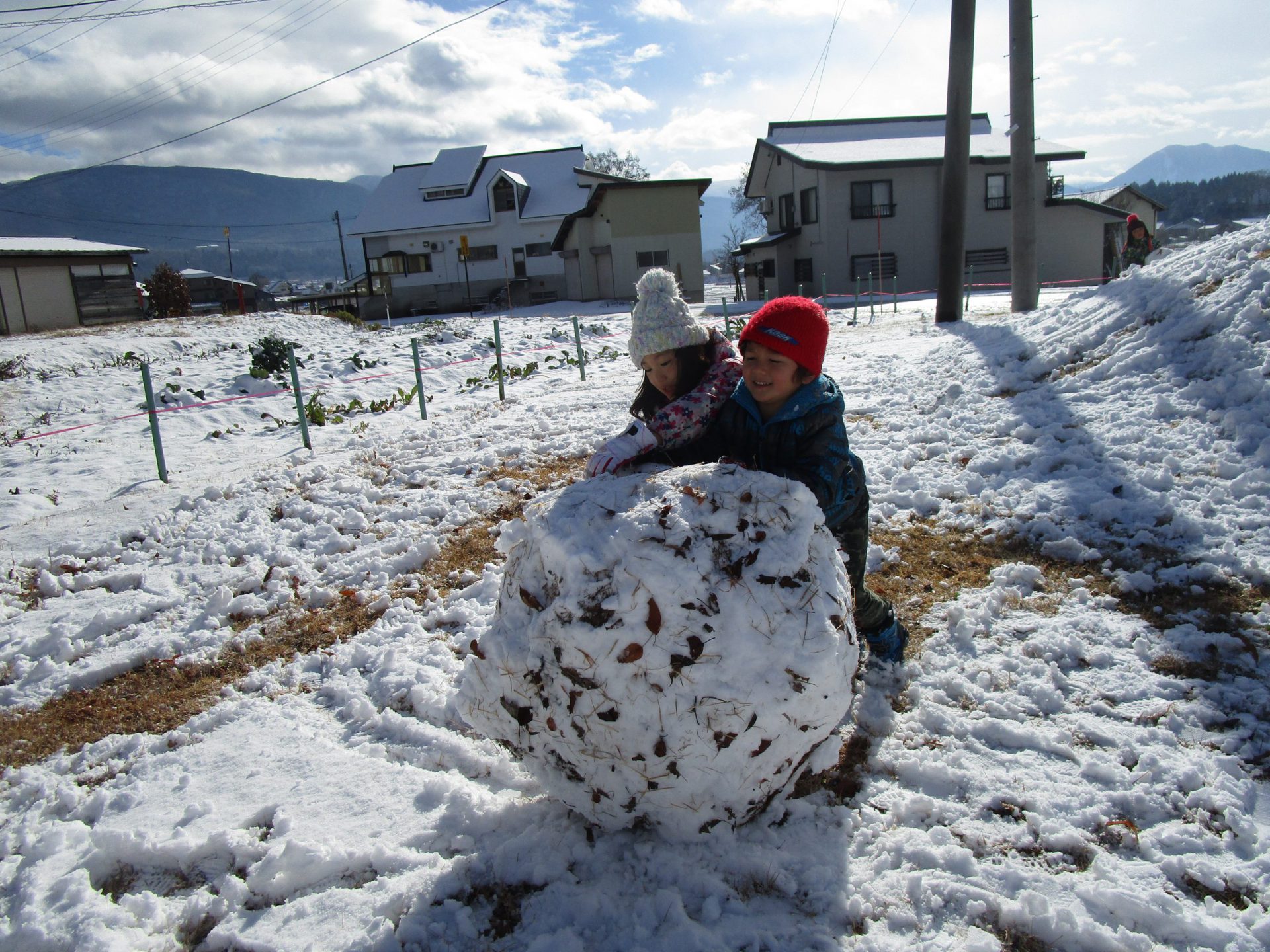 その様子を見て、4歳児や3才児も「教えて!」「どうやったら大きくなるのかなぁ?」と雪玉作り