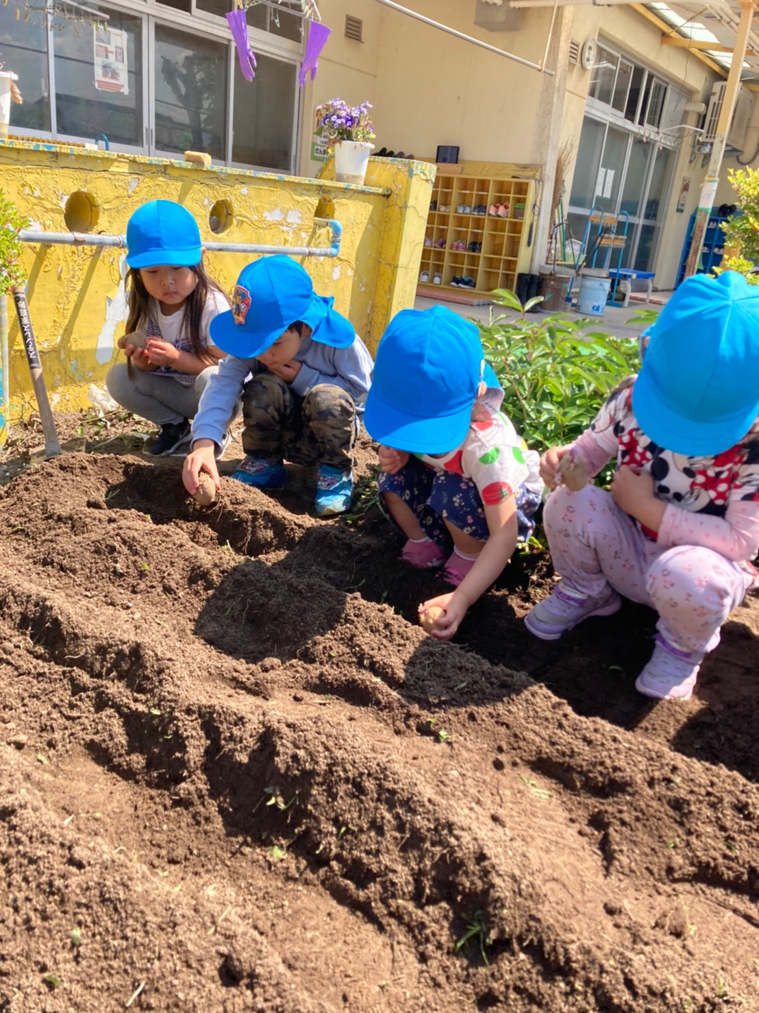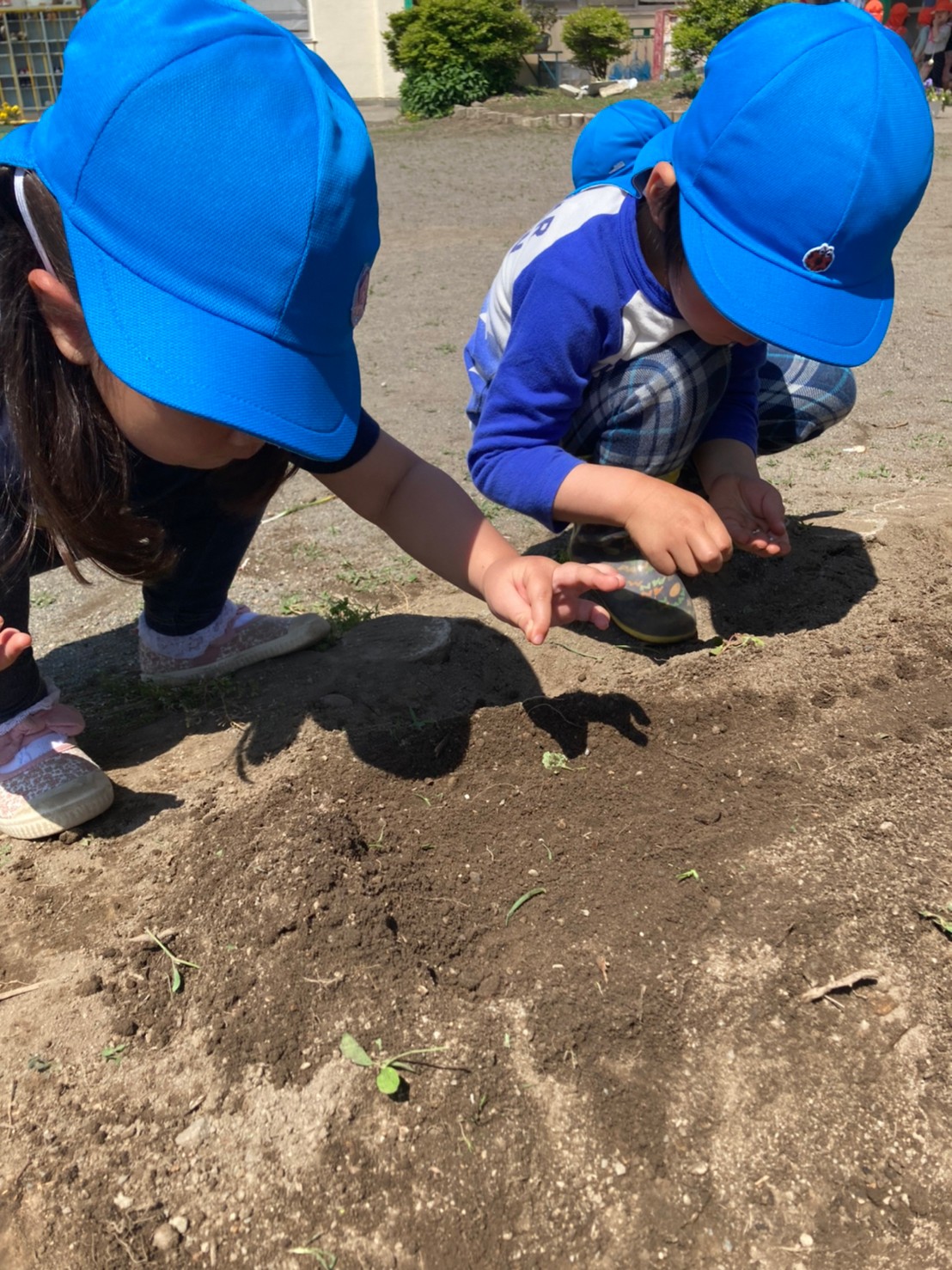 絵本「どんどこどん」を見ながらどんな風に土の中で育つのかを学び、