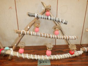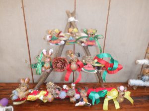 作品を置く棚の上は置ききれないほど!今度は散歩で枝を拾いに行き、たくさん作ったその人形をくっつけてクリスマスの飾りにすることにしました。