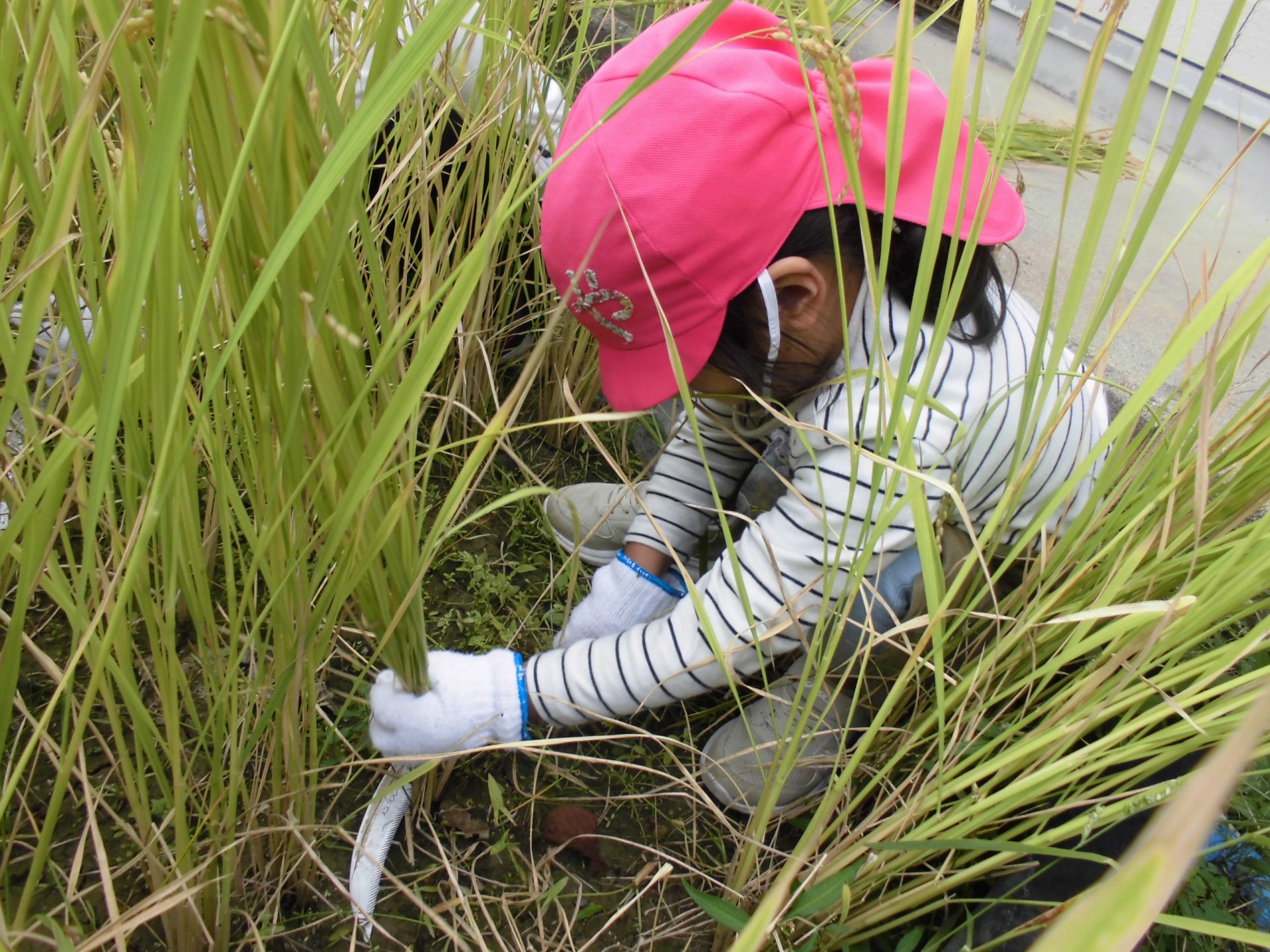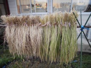 9月下旬に稲刈り。稲刈りの鎌で行いました。