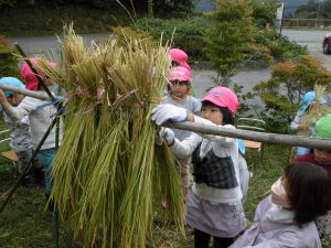 10月下旬。みんなで作ったお米を給食の時に、おむすびにしてもらって食べました!