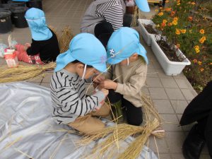 お友だちと協力し合って、頑張っていました。(水色帽子は年少さんです。)微笑ましい姿でした。