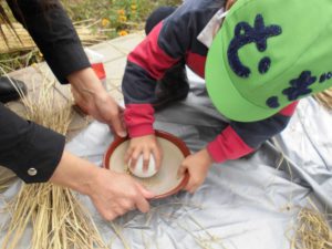 田んぼの土を地域の方に分けていただき、田んぼの土を作ることから始めました。