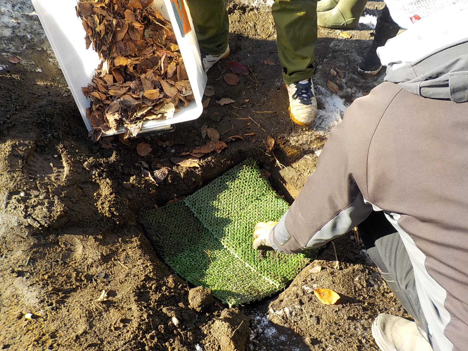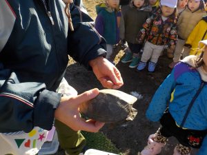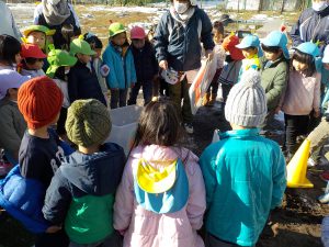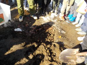 「みどりちゃん春になったらまた会おうね」と子ども達。土の中に入っていく様子を静かに見守っていました。