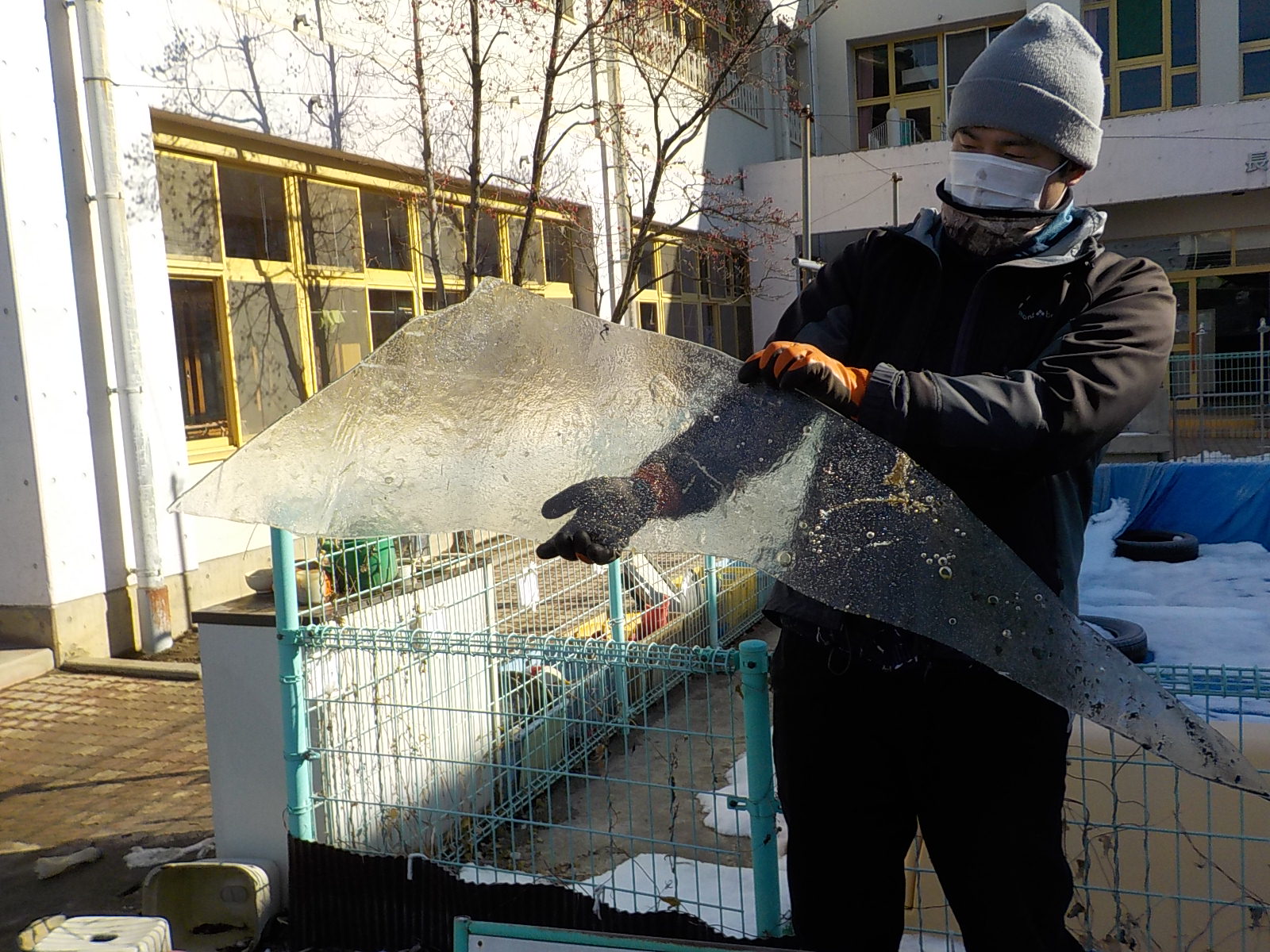 先週からクリアケースの葉っぱの中に入っていたみどりちゃん。久しぶりに光を浴びて何だか眠そうです。子ども達は「もう寝ているみたいだね」「首が出てこないね」と言っていました。